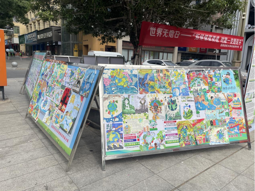 值得关注的是,现场还设置了主题绘画展示区,将“美丽中国·少年绘”活动征集到的优秀手抄报、绘画及手工艺作品进行展示,废旧纸壳再造的艺术画、废弃纸巾经彩绘变身“一路生花廊道”,一个个天马行空般创意的作品诠释变废为宝的独特魅力。
