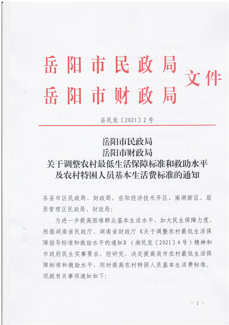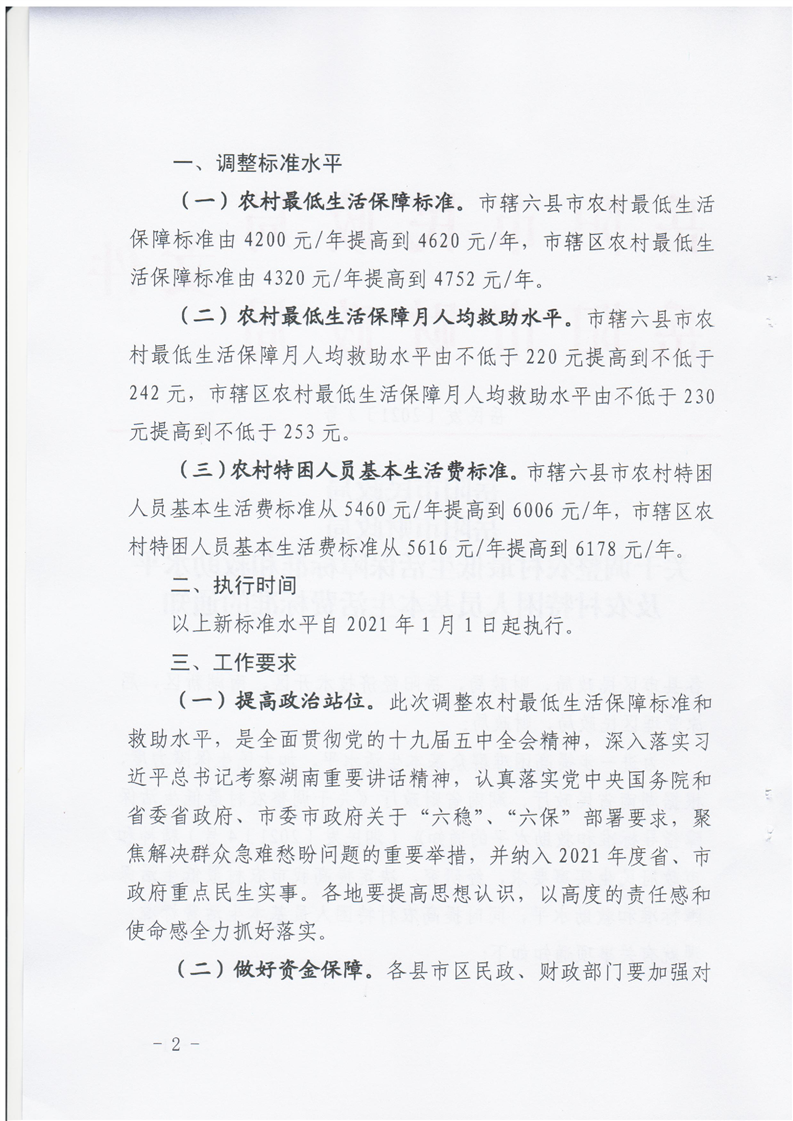 关于调整农村最低生活保障标准和救助水平及农村特困人员基本生活费标准的通知