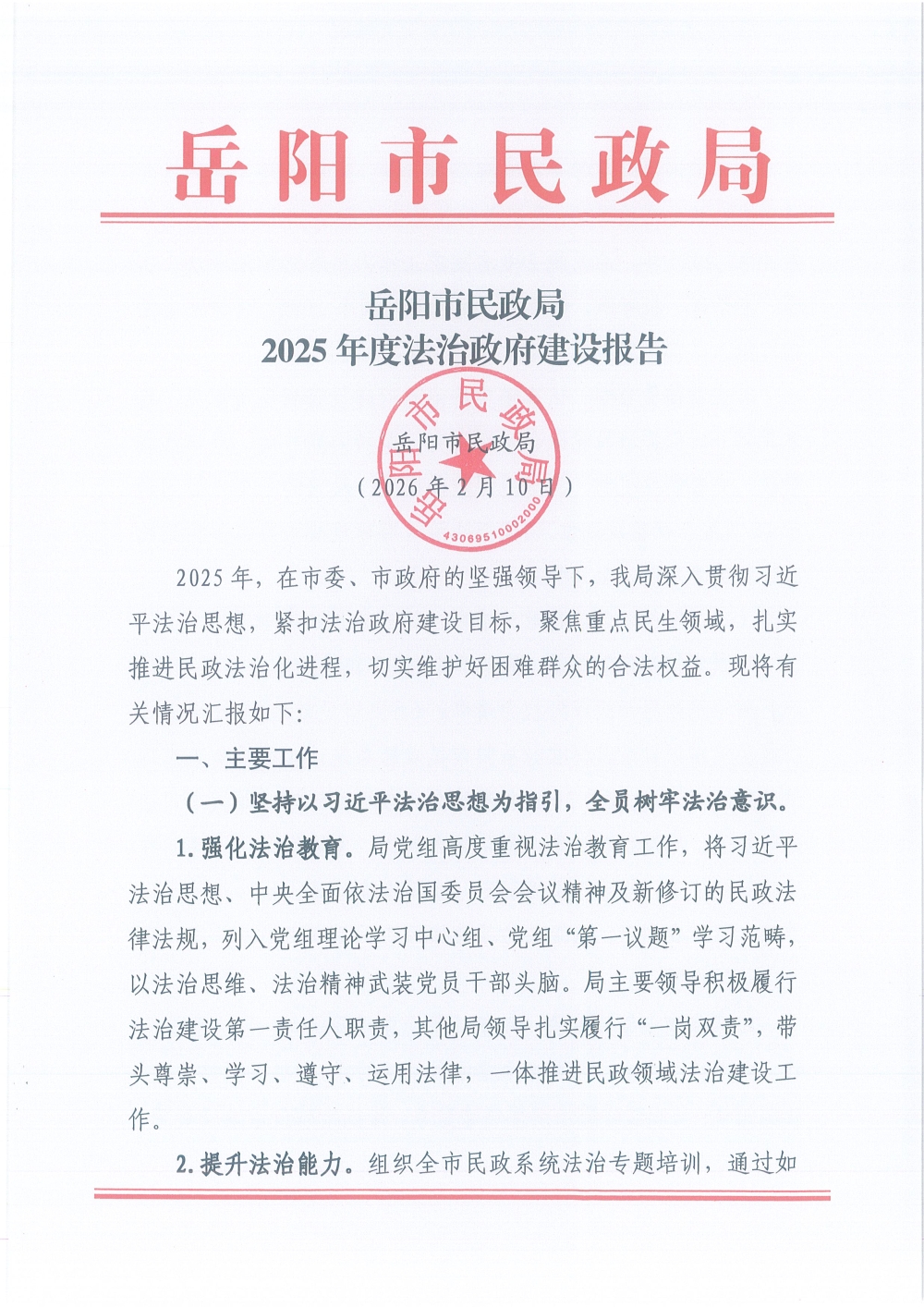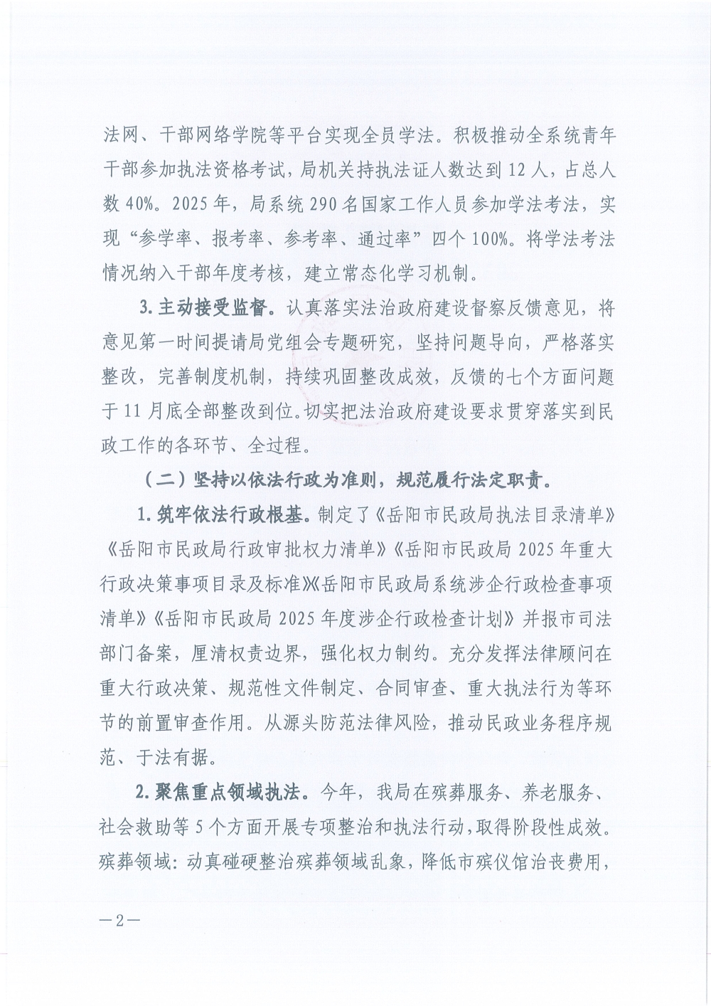 岳阳市民政局2025年度法治政府建设报告