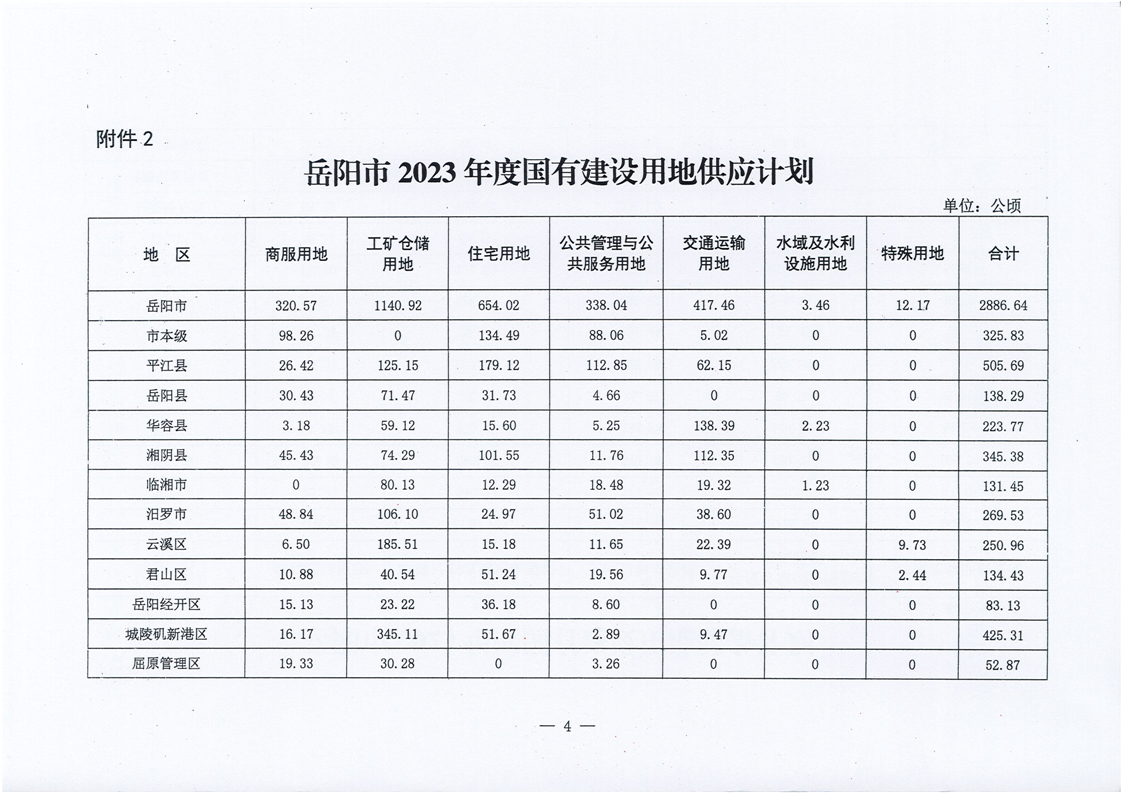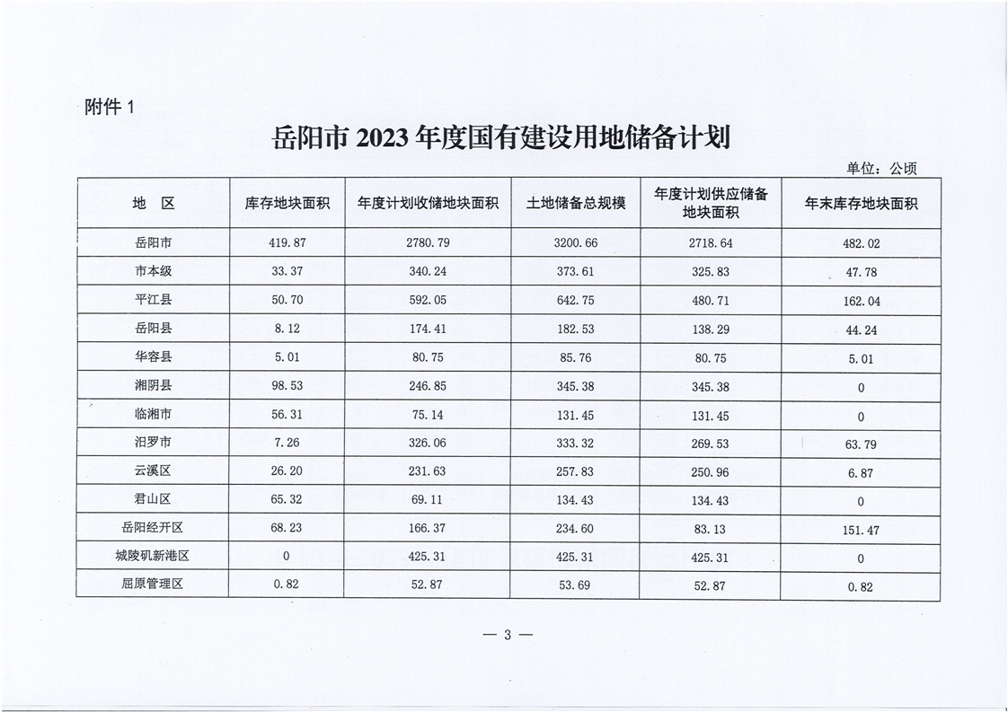 岳阳市2023年度国有建设用地土地储备和供应计划