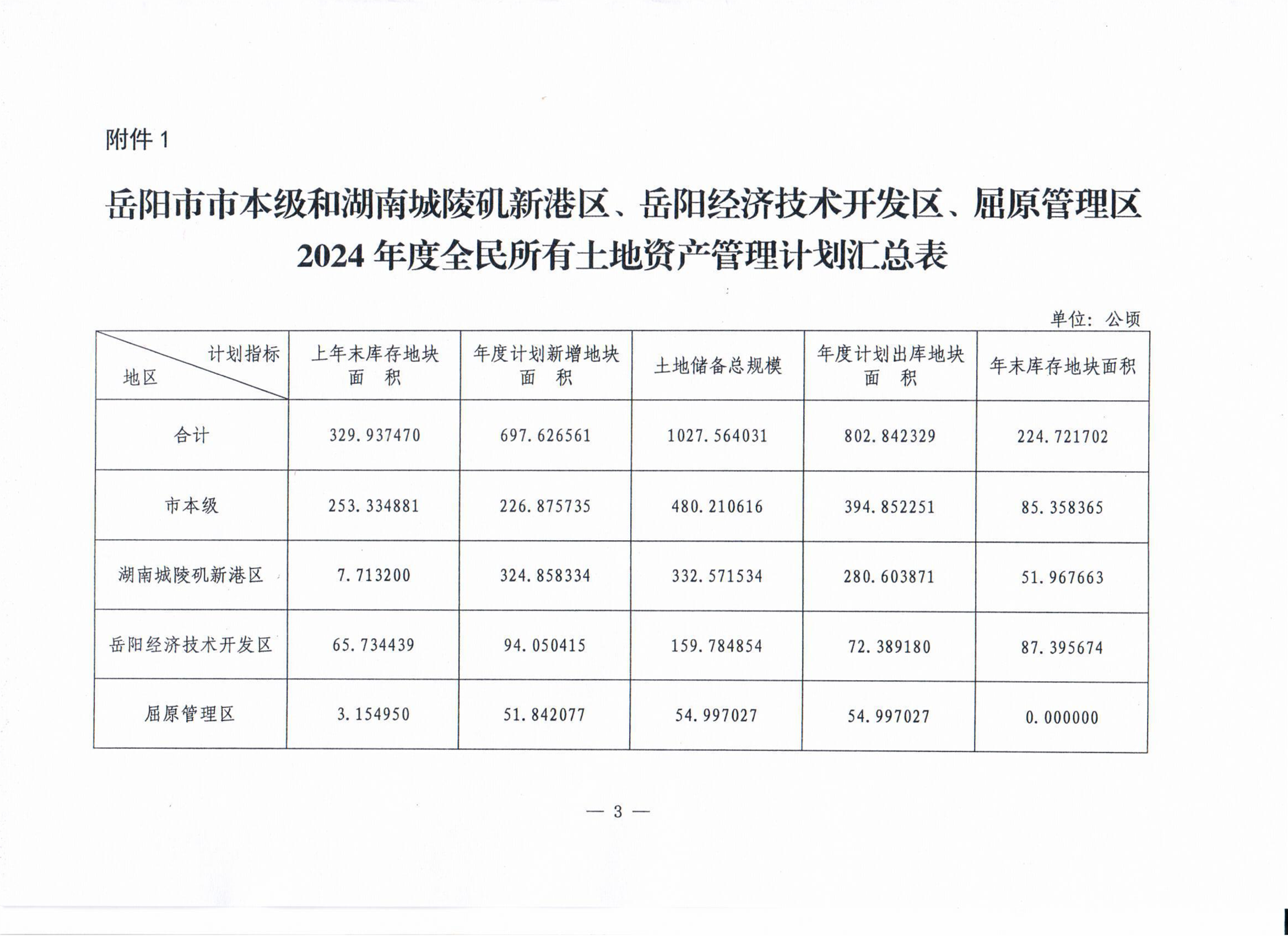 岳阳市市本级和湖南城陵矶新港区、岳阳经济技术开发区、屈原管理区2024年度全民所有土地资产管理计划和国有建设用地供应计划