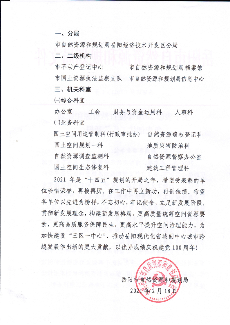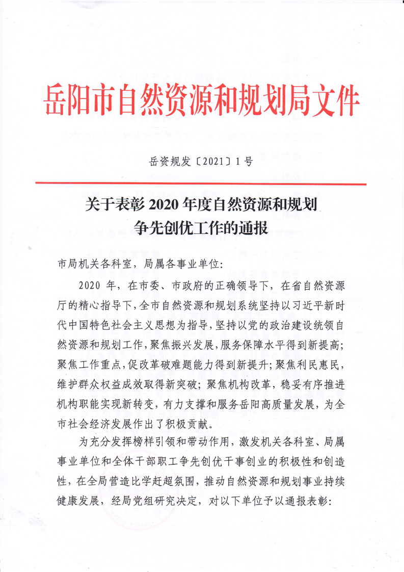 关于表彰2020年度自然资源和规划争先创优工作的通报