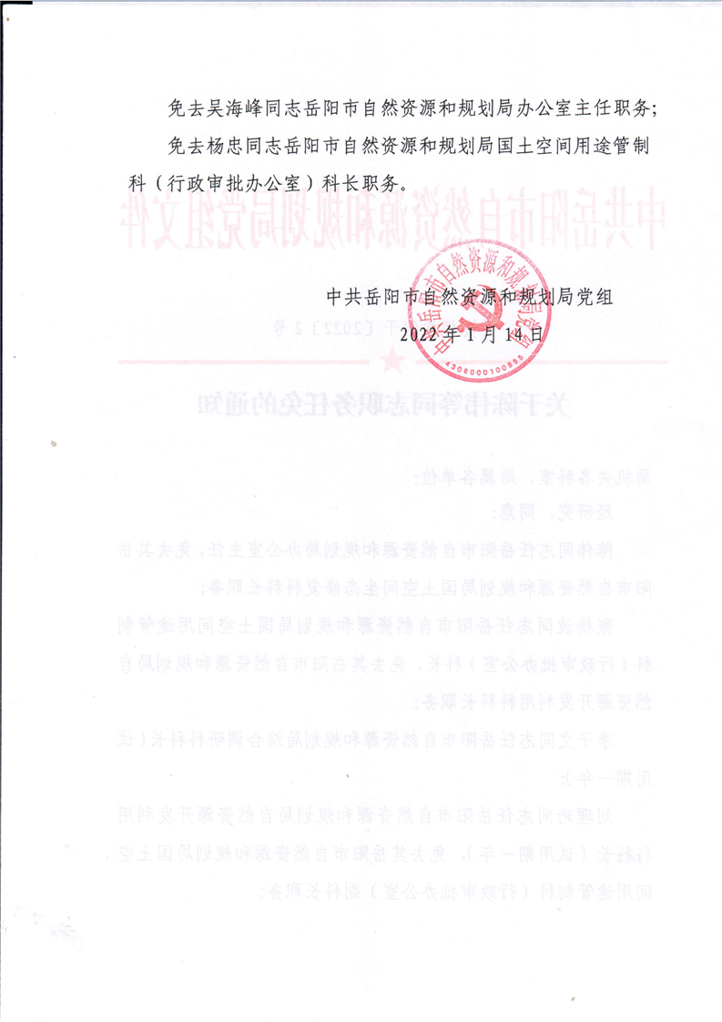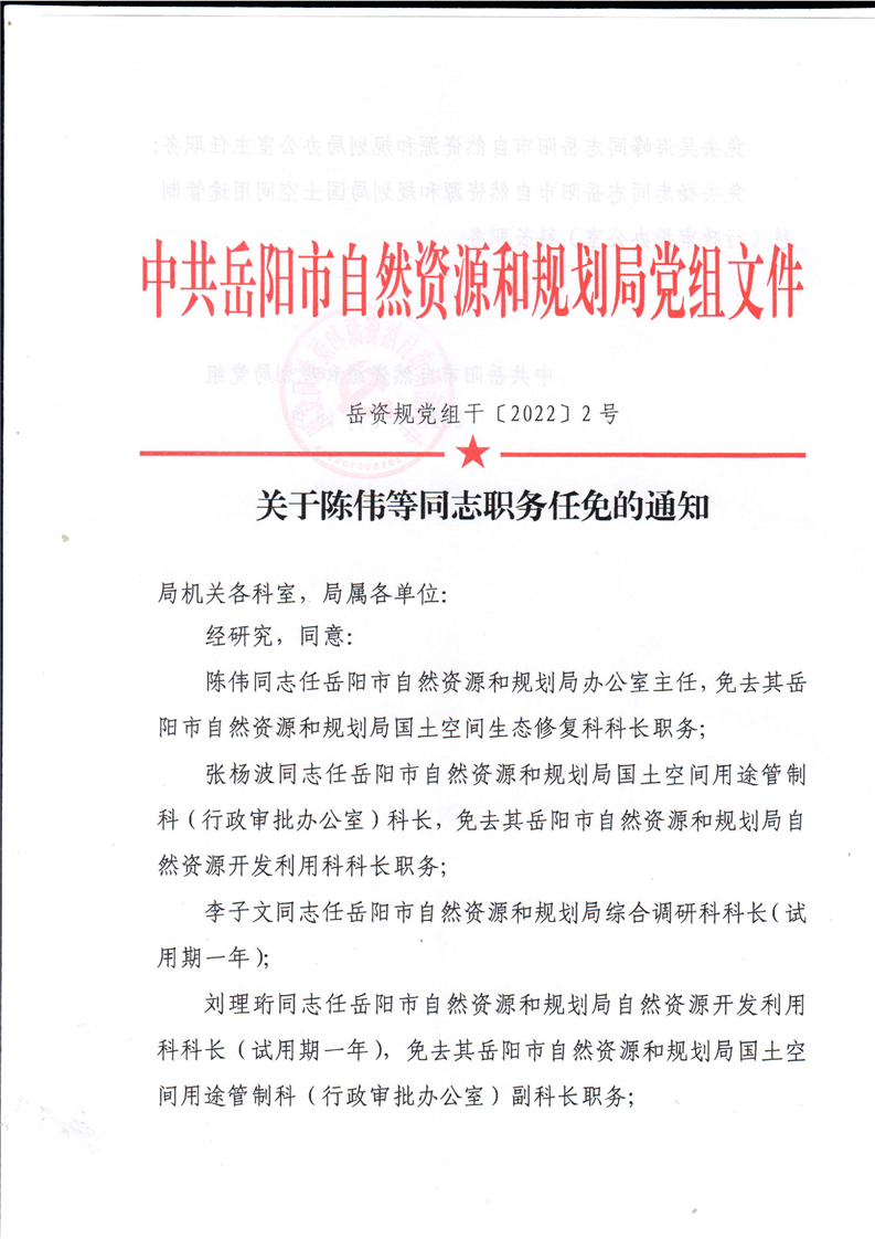 关于陈伟等同志职务任免的通知 岳资规党组干〔2022〕2号