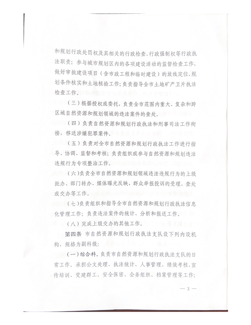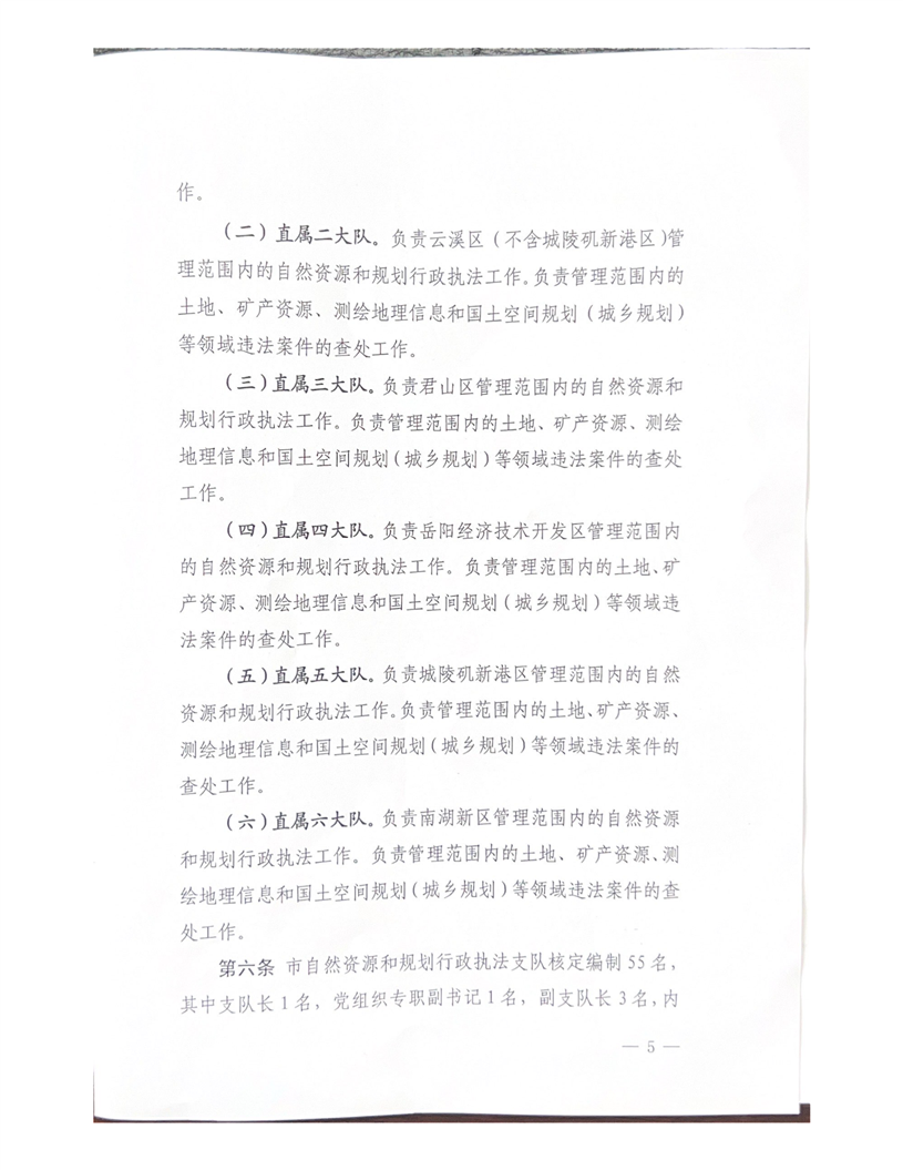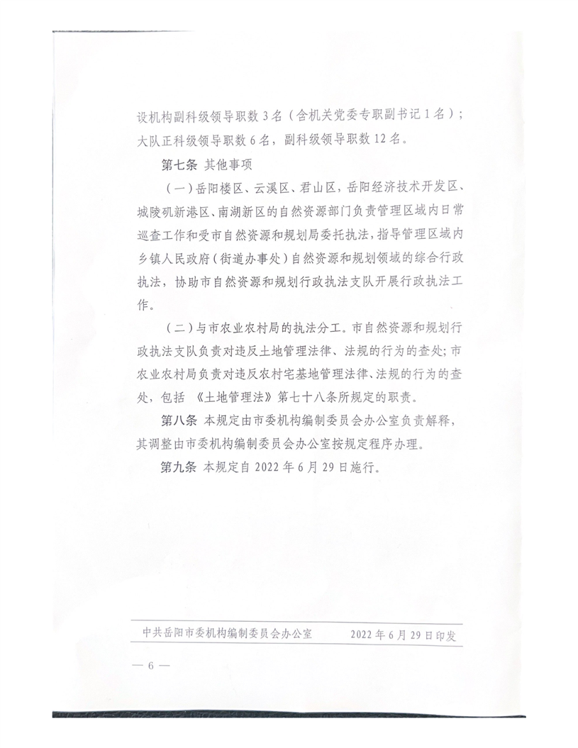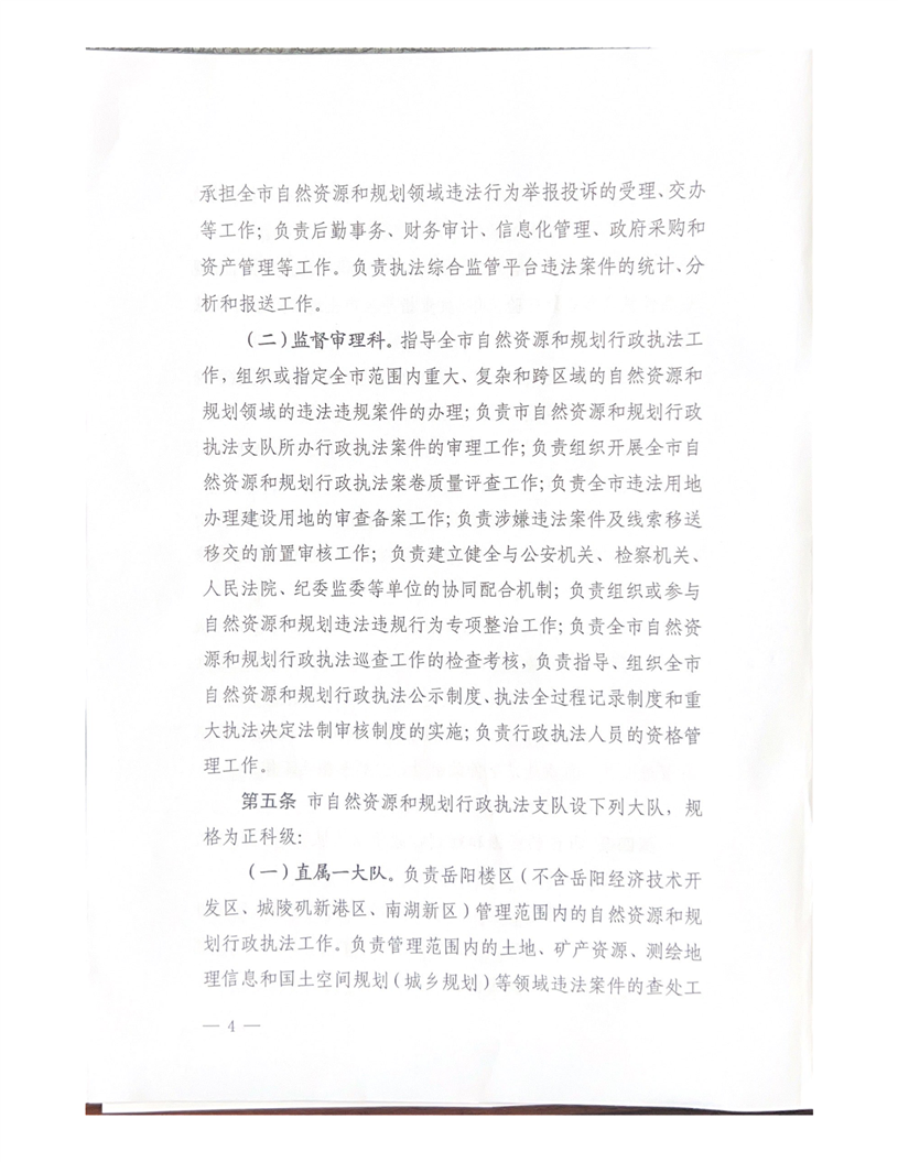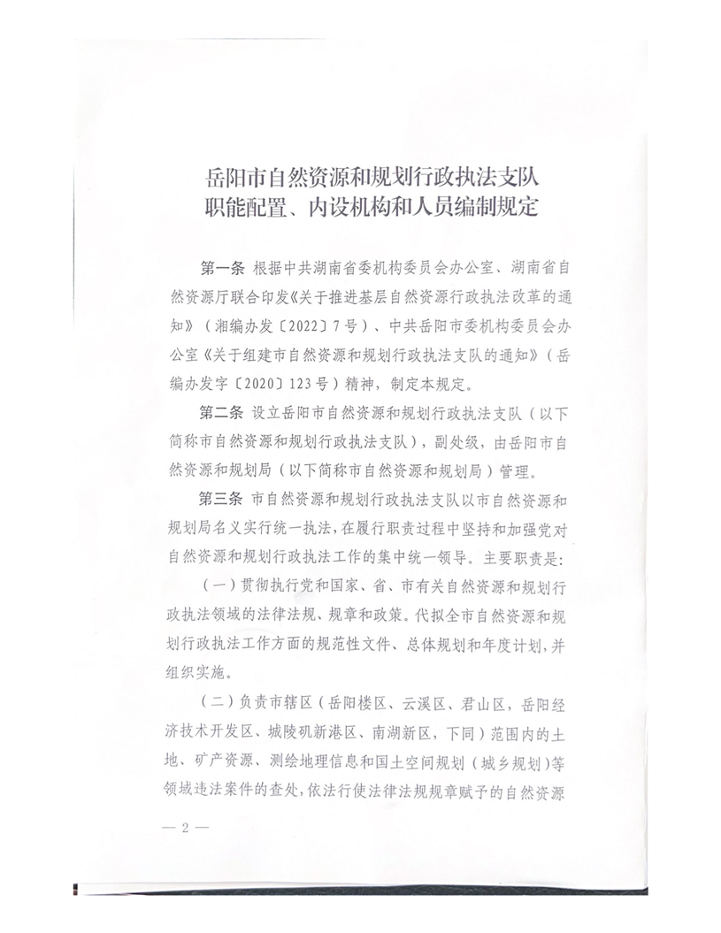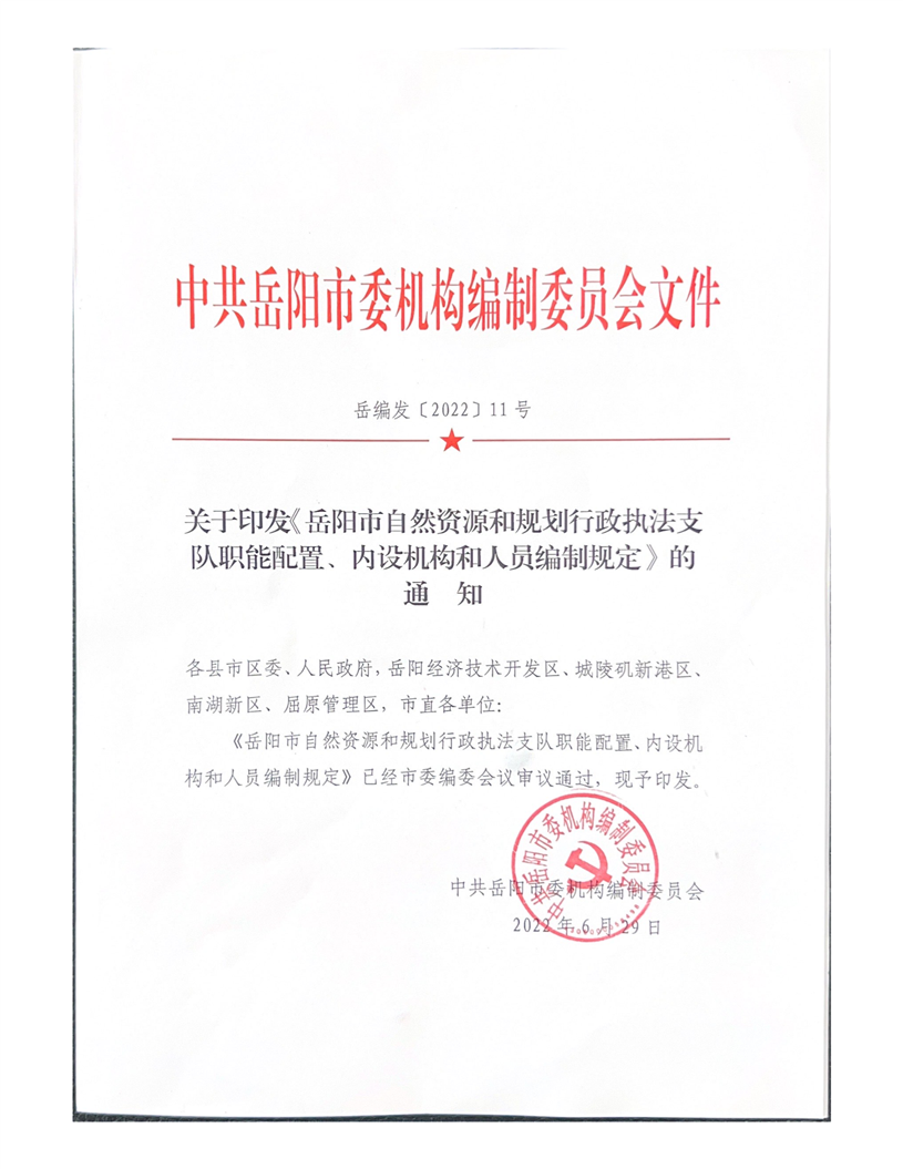 关于印发《岳阳市自然资源和规划行政执法支队职能配置、内设机构和人员编制的规定》的通知