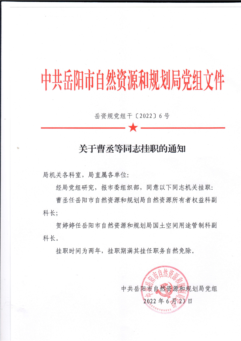 关于曹丞等同志挂职的通知