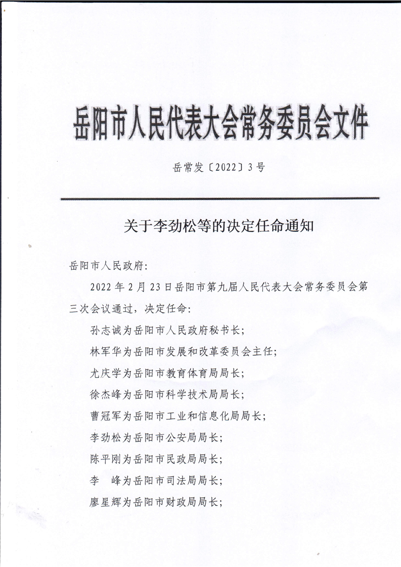 关于李劲松等的决定任命通知