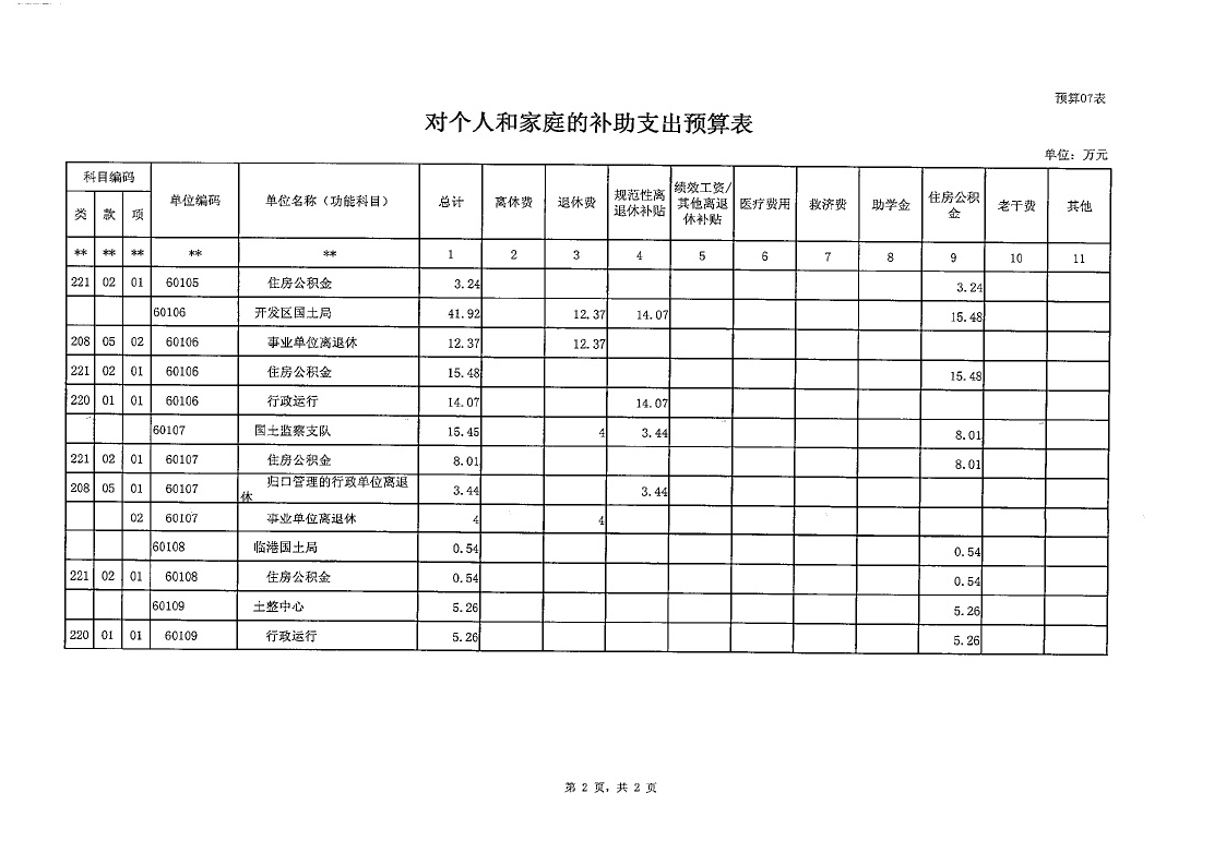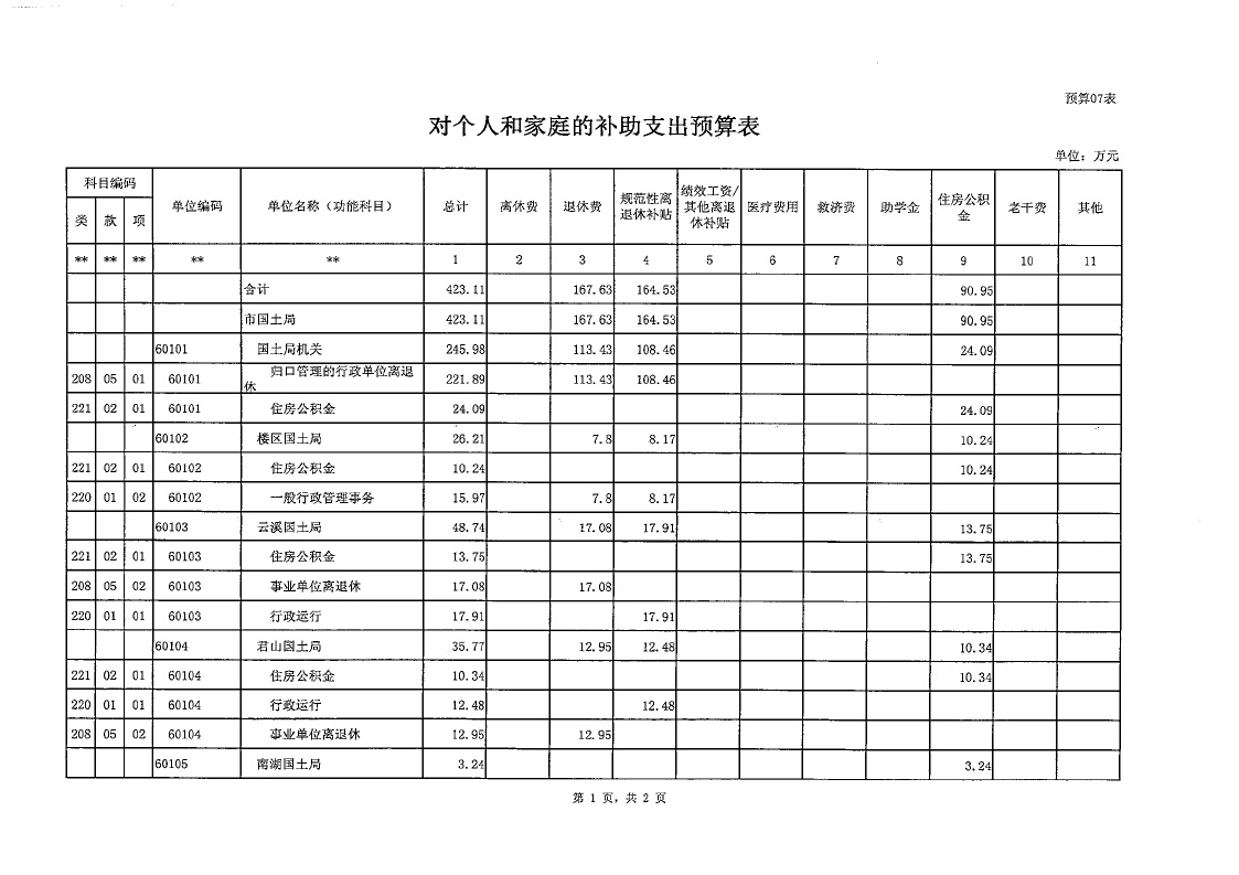 2016年岳阳市国土资源局对个人和家庭的补助支出预算表