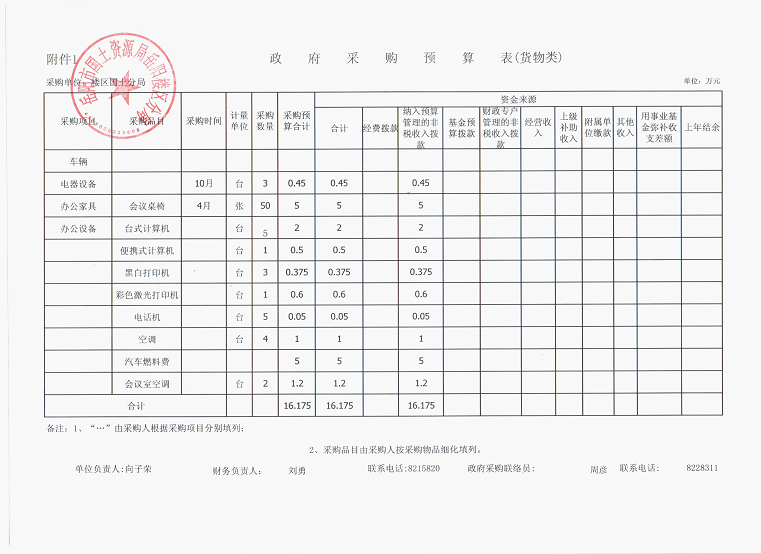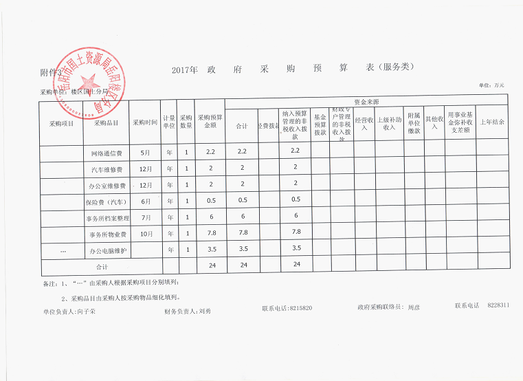 楼区国土分局2017年度市直部门厉行节约相关经费自查及政府采购预算表