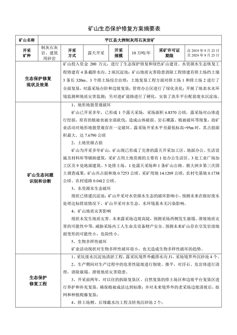 湖南省平江县大洲制灰石灰岩矿矿山生态保护修复方案