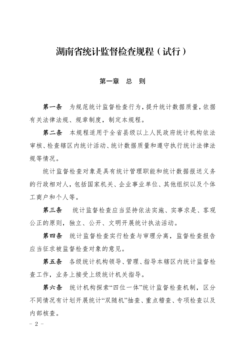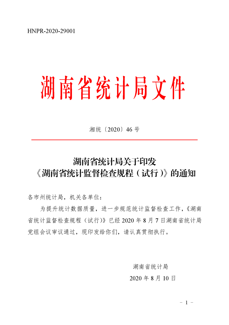湖南省统计局关于印发《湖南省统计监督检查规程(试行)》的通知