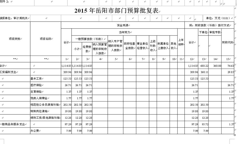 附件:1、岳阳市审计局2015年部门预算编制说明