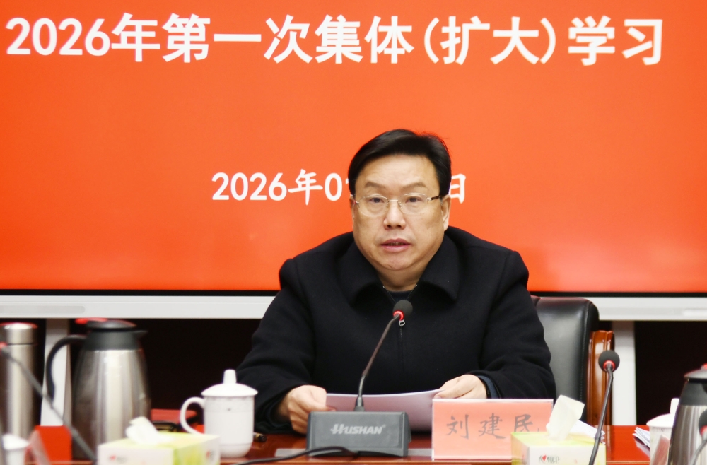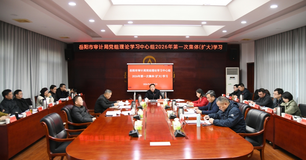 1月9日上午,岳阳市审计局召开党组理论学习中心组2026年第一次集体(扩大)学习会议,传达学习习近平主席二〇二六年新年贺词,中央经济工作会议、省委十二届十次全会暨省委经济工作会议、市委八届十次全会暨市委经济工作会议、省审计厅党组理论学习中心组(扩大)2025年第12次集中学习及市人大、政协“两会”精神,研究审计工作贯彻落实举措。局党组书记、局长刘建民主持会议并讲话,会上行了交流发言,局领导班子成员、各级调研员及各科室(中心)负责人参加学习。