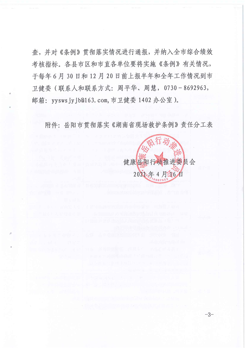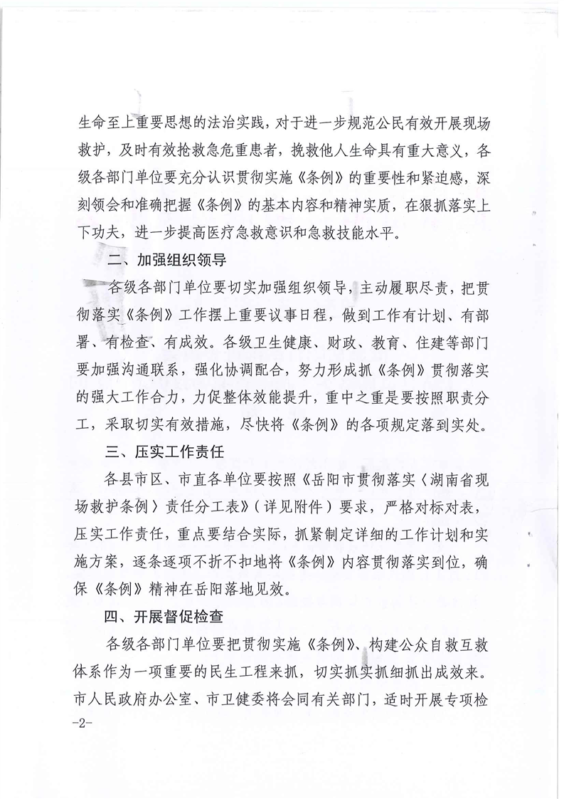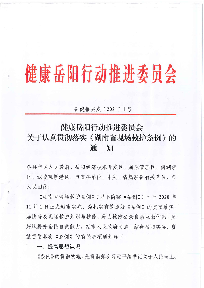 健康岳阳行动推进委员会关于认真贯彻落实《湖南省现场救护条例》的通知