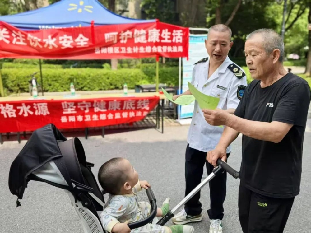 此次宣传主题为:“卫生饮水,你我同行,共建健康中国”。卫生监督执法人员利用饮用水卫生知识手册、展板向居民宣传生活饮用水卫生安全和净水器相关知识,当场解答居民提出的家中常见水质异常情况,如生活饮用水为什么会有氯味、生活饮用水为什么有时候是乳白色、生活饮用水出现异常怎么办等相关问题。岳阳市水务集团工作人员入户现场检测水质,所检指标均符合国家相关标准要求。宣传活动累计发放宣传手册200余份,接询群众20余人次。
