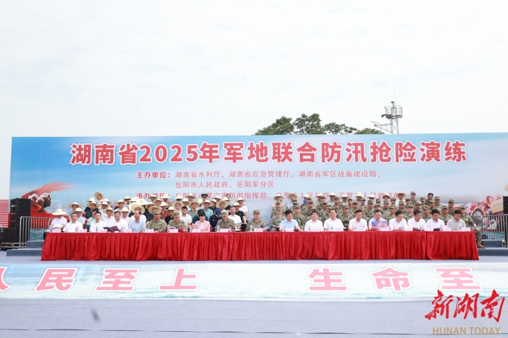 6月5日上午,湖南省2025年军地联合防汛抢险演练在汨罗市举行,通过7项科目演练,检验军地协同防汛抢险实战能力。省军区司令员林佳春出席并讲话。