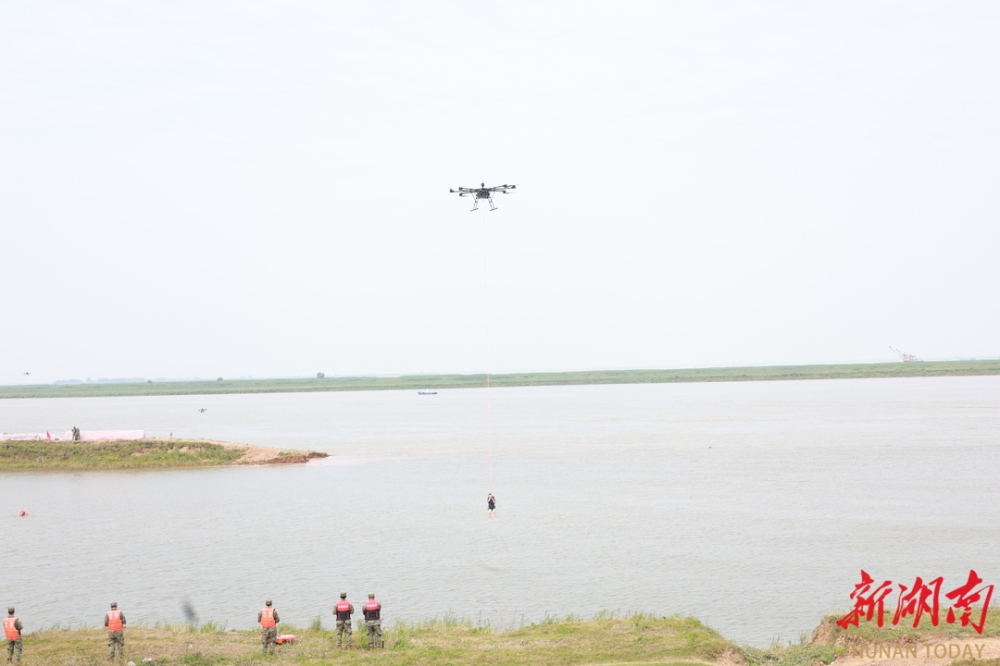 在巡堤查险环节中,巡查队员通过智能定位系统实时上报散浸险情,技术组指导开挖导渗沟控制渗水。在管涌处置中,民兵应急连运用装配式围井技术快速构筑反滤屏障,15分钟内遏制险情。水上救援行动演练采用无人机精准抛投救生圈、无人艇转移落水人员,实现危化品打捞全程机械化。在抢筑子堤环节,平江县民兵应急连使用轻质玻璃钢模块,10分钟搭建挡水墙抵御洪水。面对模拟溃垸风险,军地联合指挥当地群众分批次紧急撤离,无人机定位受困人员,冲锋舟分队成功转移河滩被困群众及车辆。