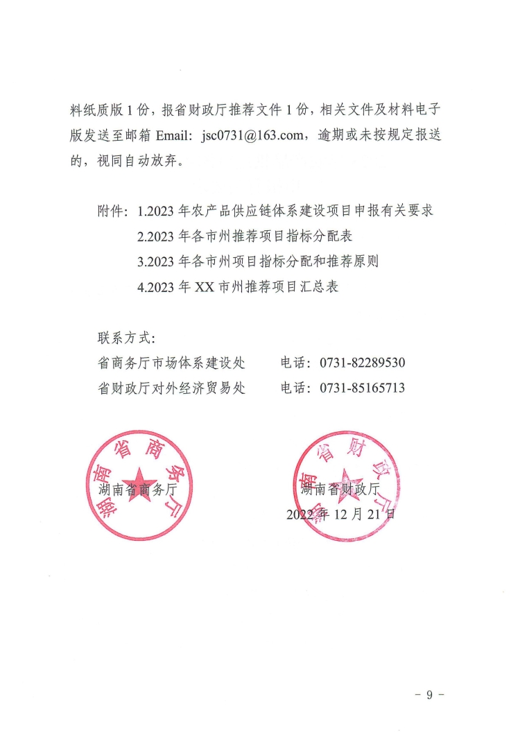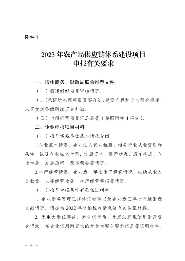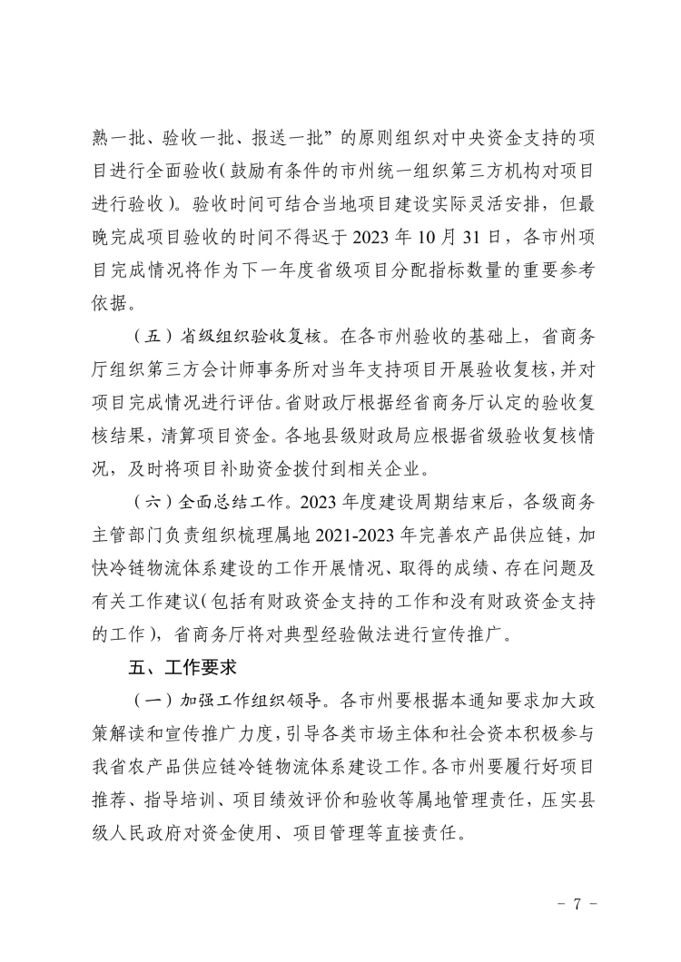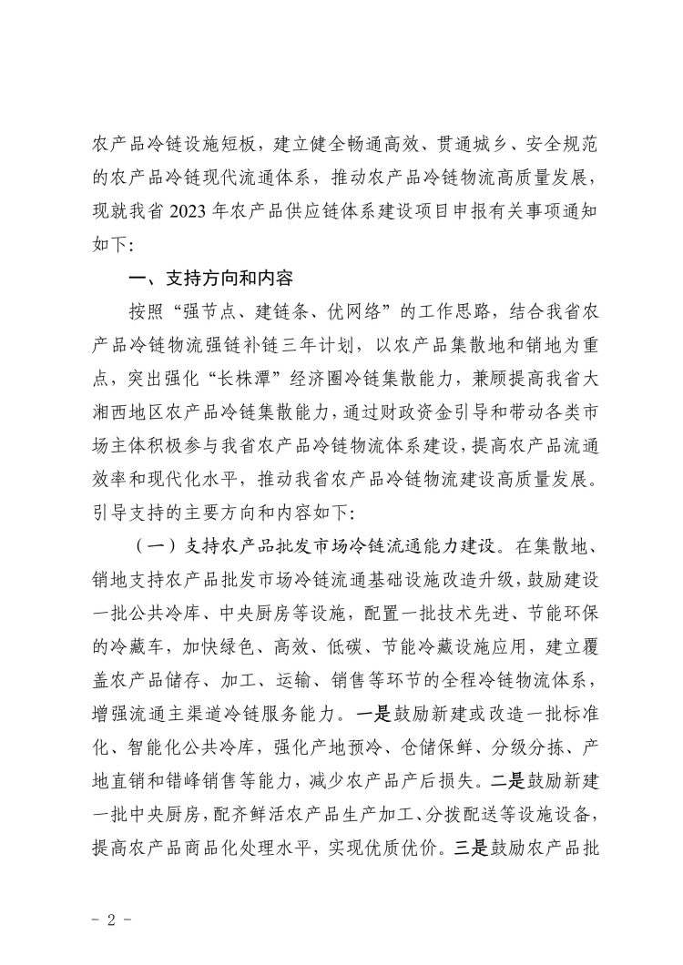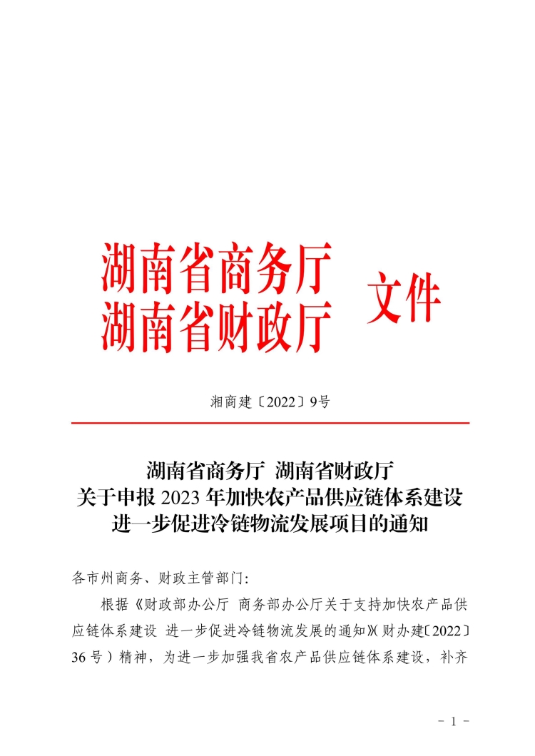 湖南省商务厅 湖南省财政厅关于申报2023年加快农产品供应链体系建设进一步促进冷链物流发展项目的通知