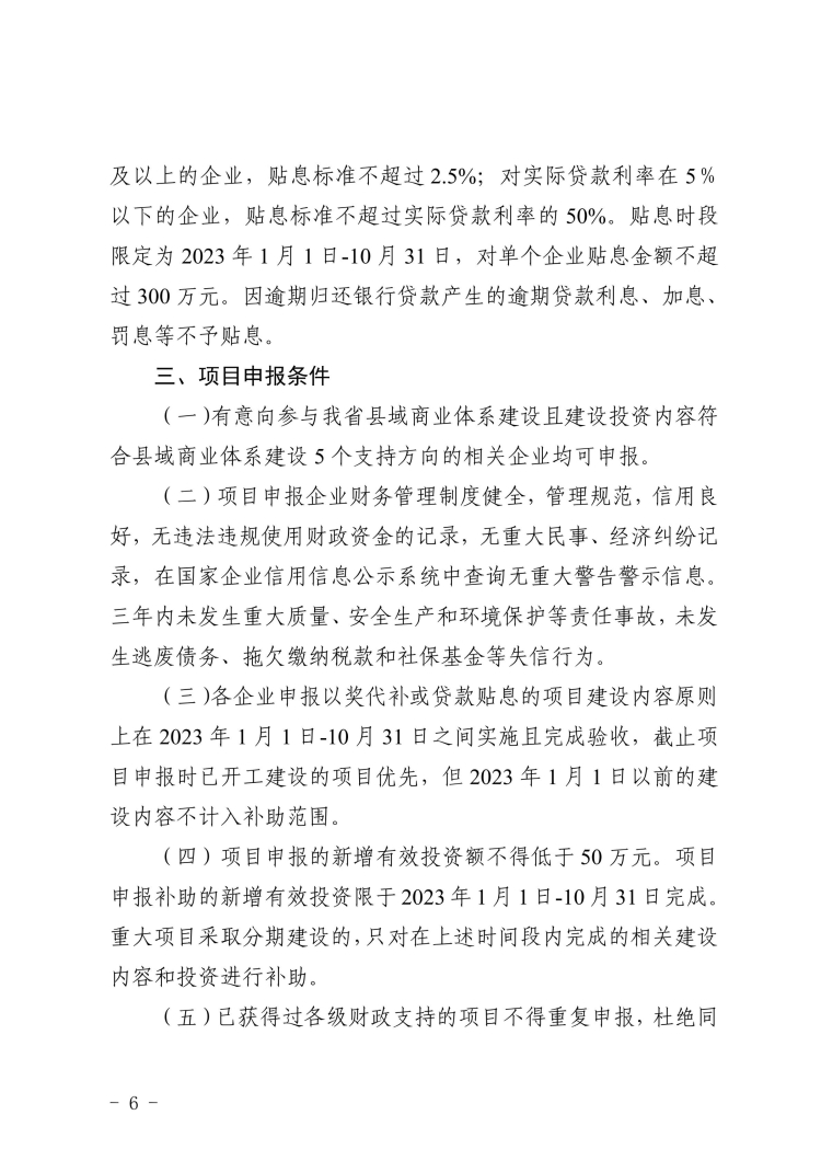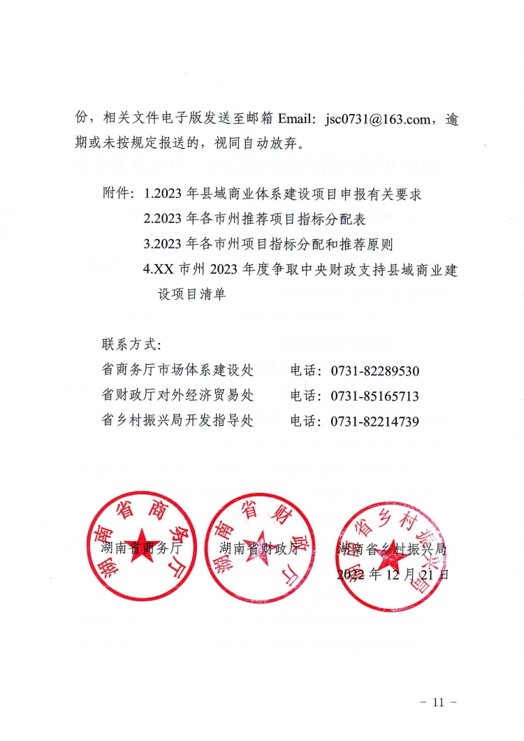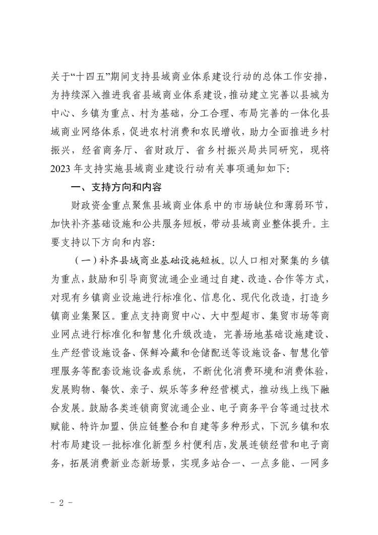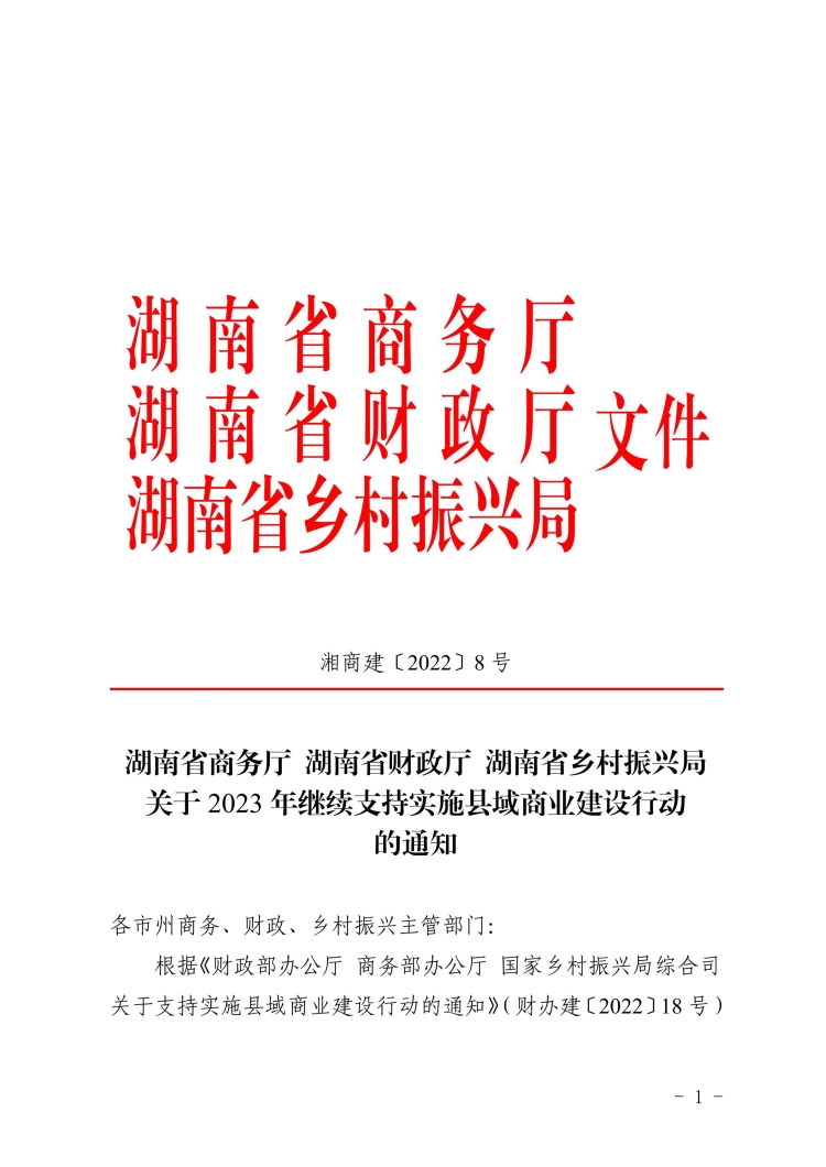 湖南省商务厅 湖南省财政厅 湖南省乡村振兴局关于2023年继续支持实施县域商业建设行动的通知