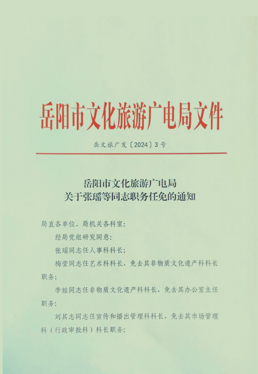 关于张瑶等同志职务任免的通知