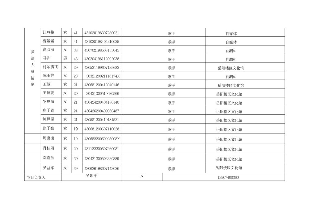 根据省文旅厅工作安排,经各县市区申报、市级推荐、省级评审等环节,现将岳阳市参评第二十届群星奖的作品情况予以公示,公示时间2025年5月9日至5月13日。公示期间如有异议可通过书面形式向市文化旅游广电局反映。以单位名义反映的,应加盖单位公章;以个人名义反映的,应署真实姓名及联系方式。