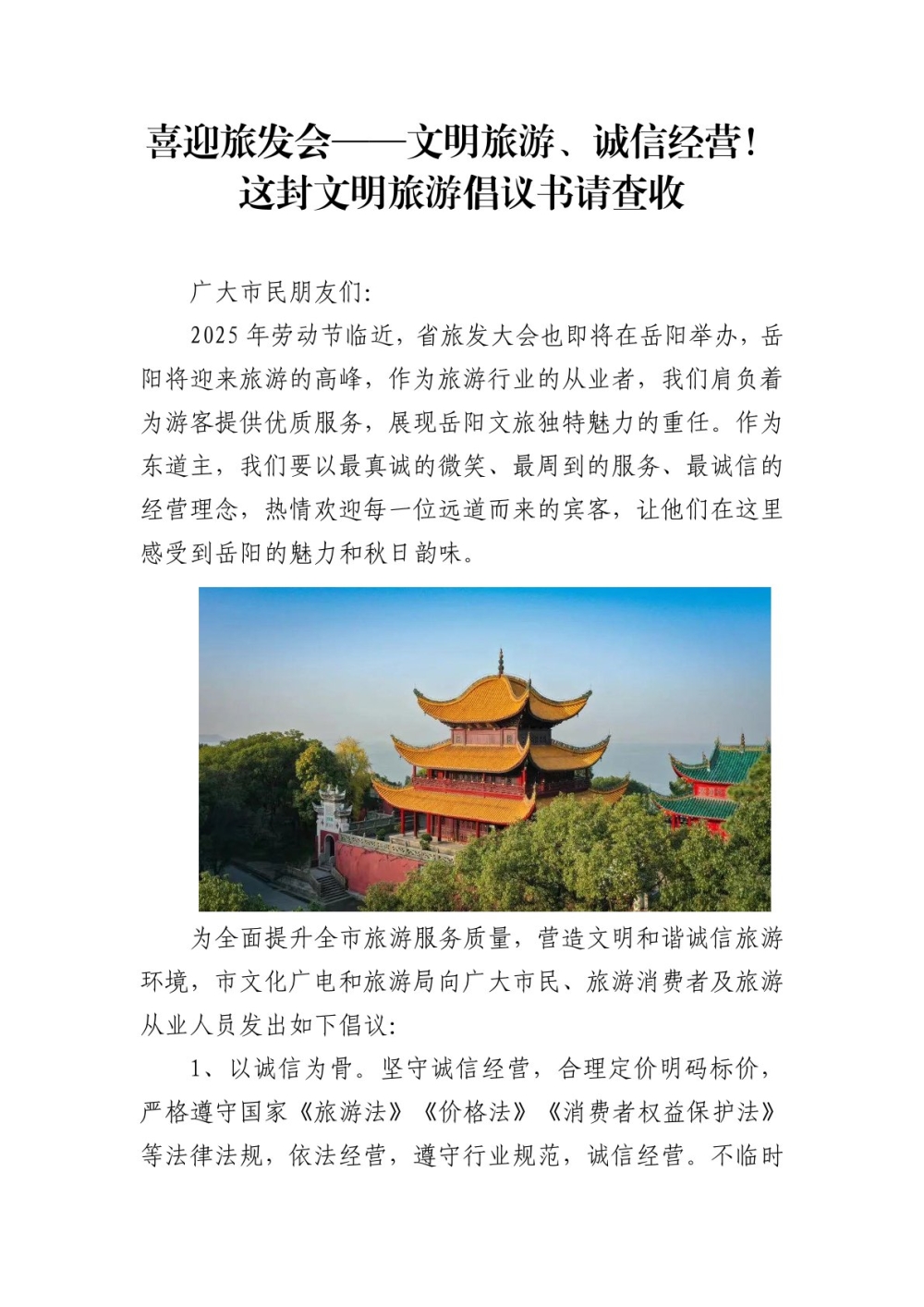 文明旅游、诚信经营!这封文明旅游倡议书请查收