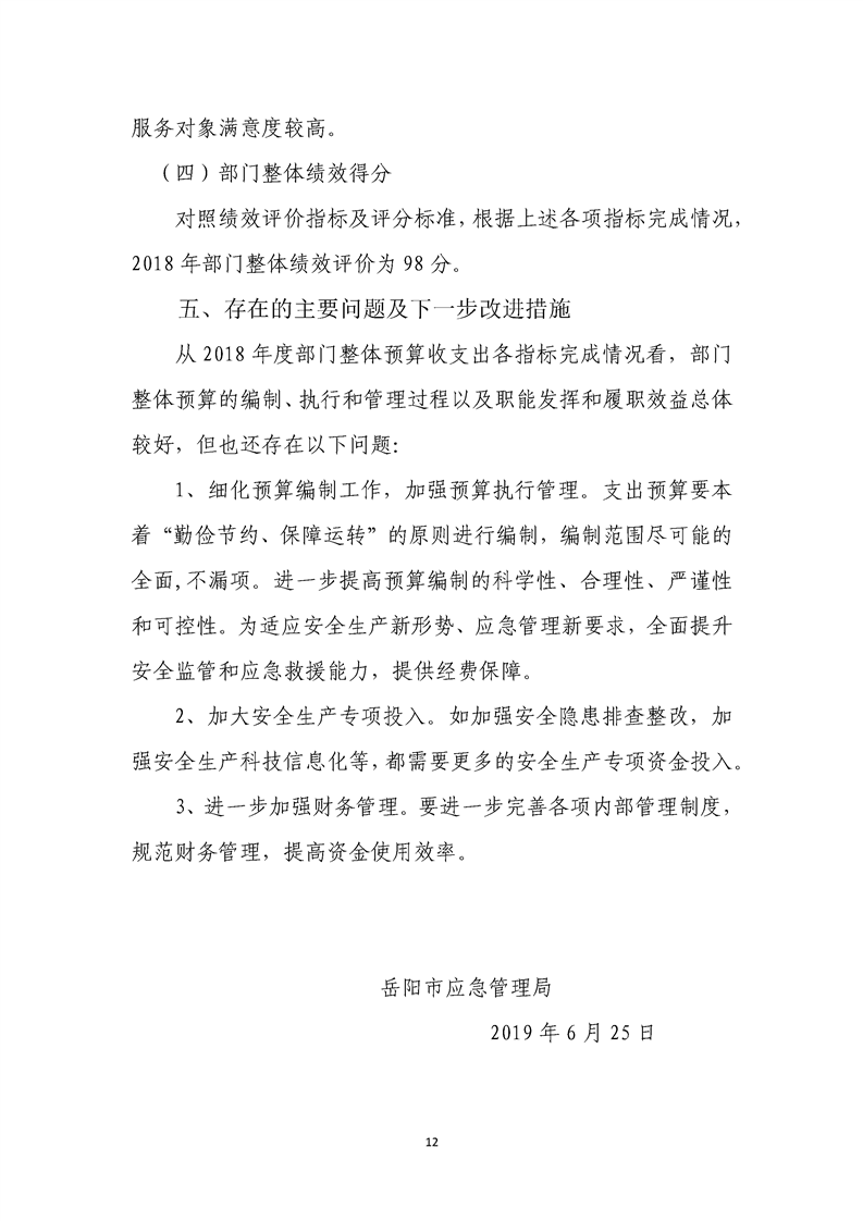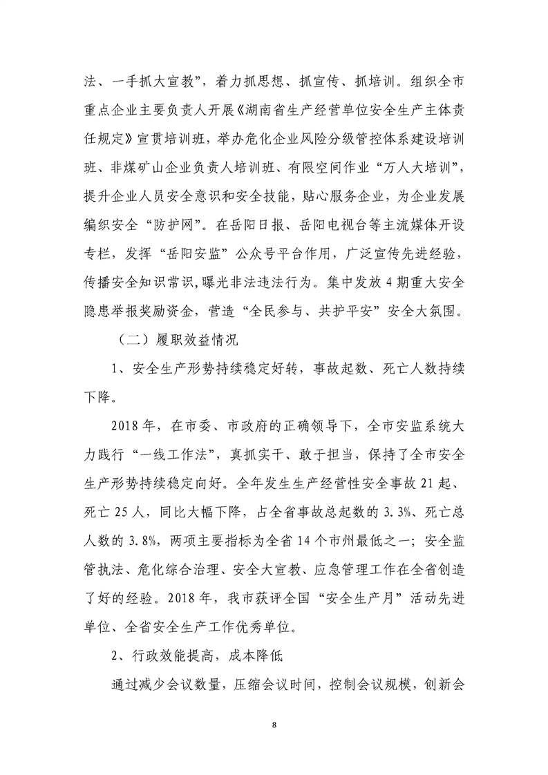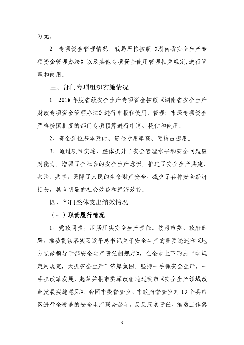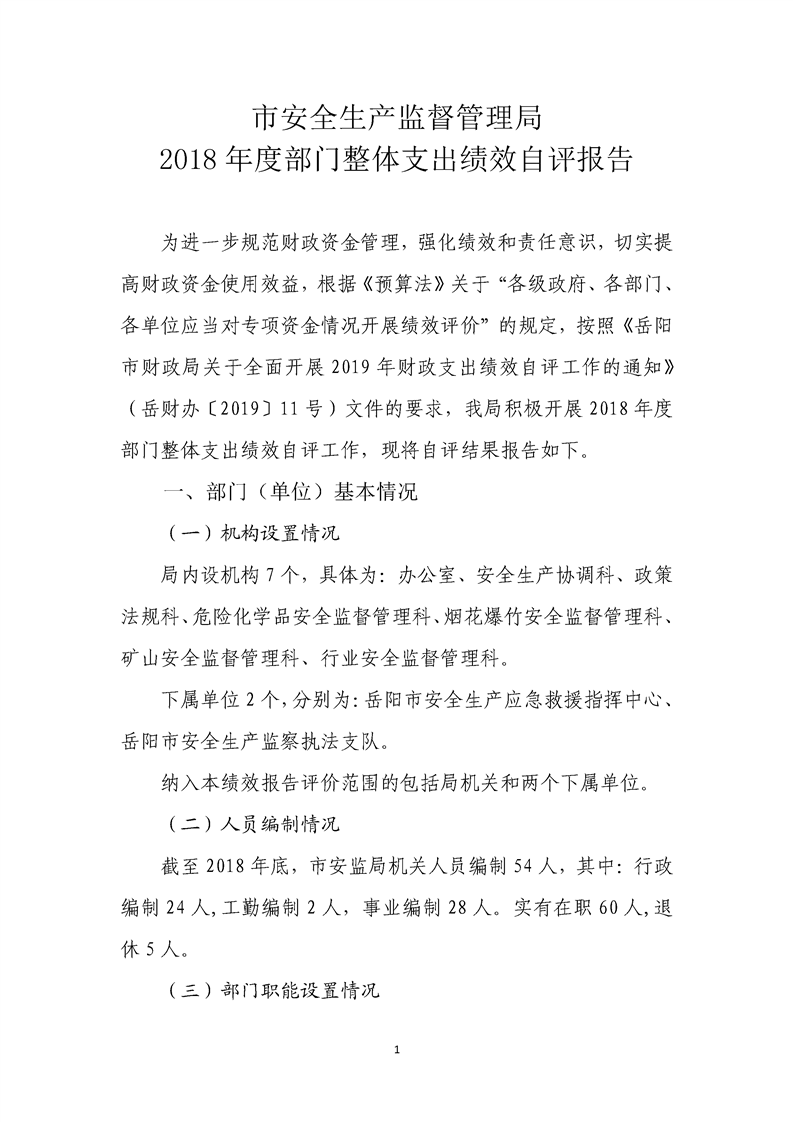 岳阳市安全生产监督管理局2018年度部门整体支出绩效自评报告