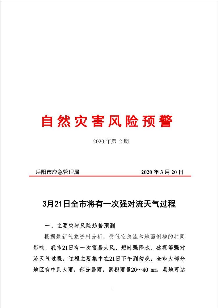 自然灾害风险预警2020年第2期/21日全市将有一次强对流天气过程