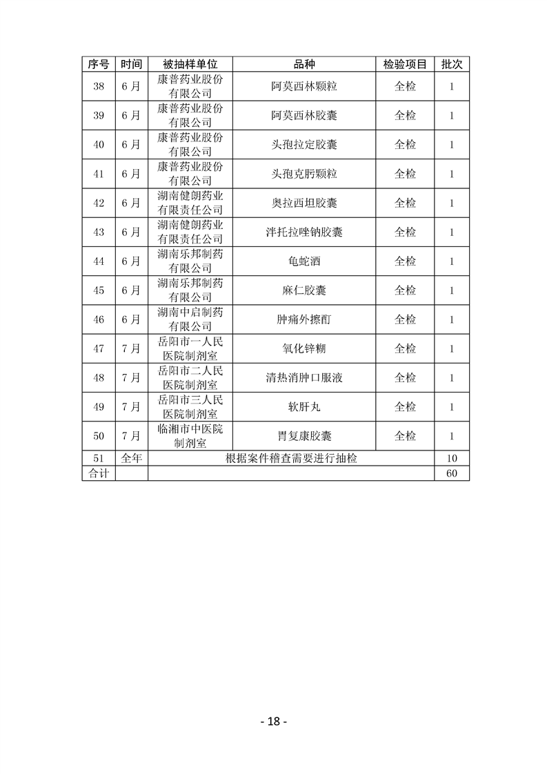 岳阳市食品药品监督管理局办公室关于印发2018年食品药品监督抽检计划的通知