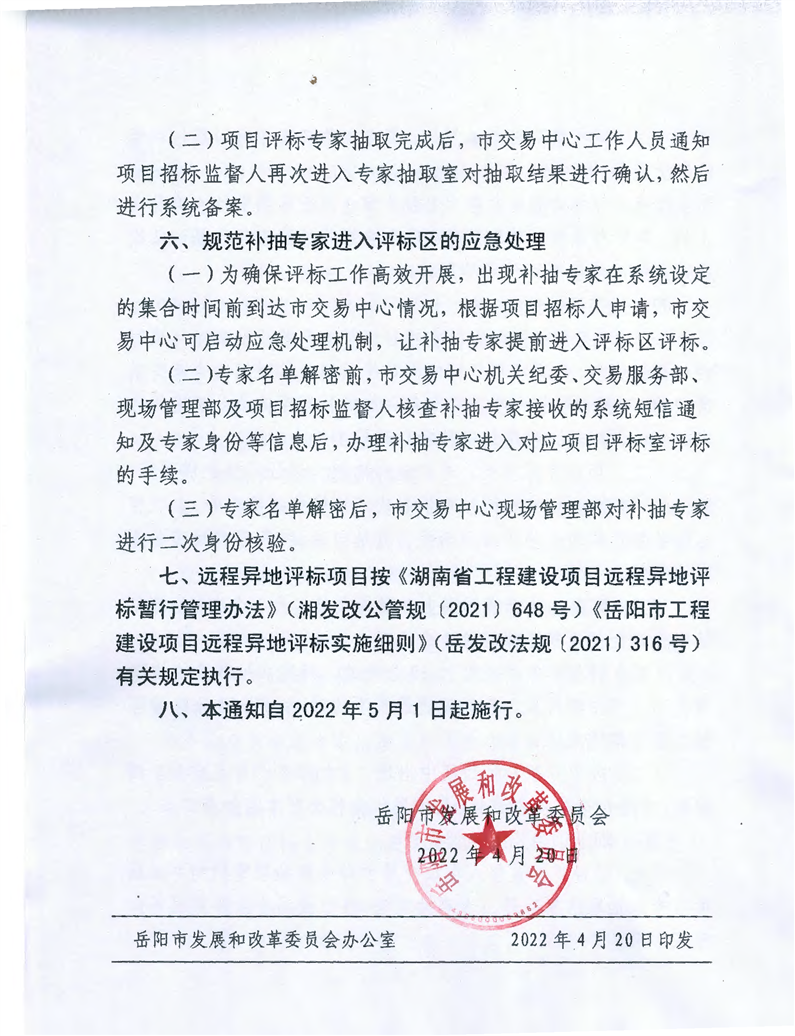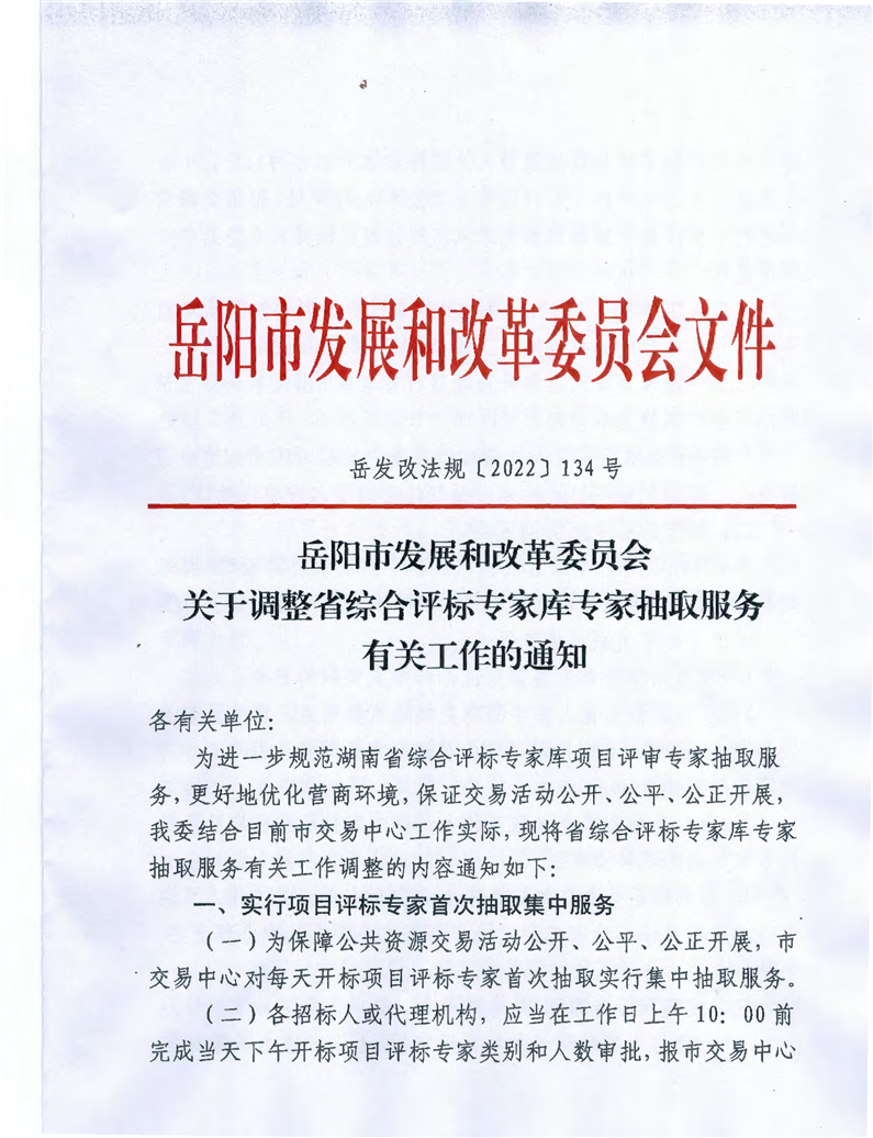 岳阳市发展和改革委员会关于调整省综合评标专家库专家抽取服务有关工作的通知