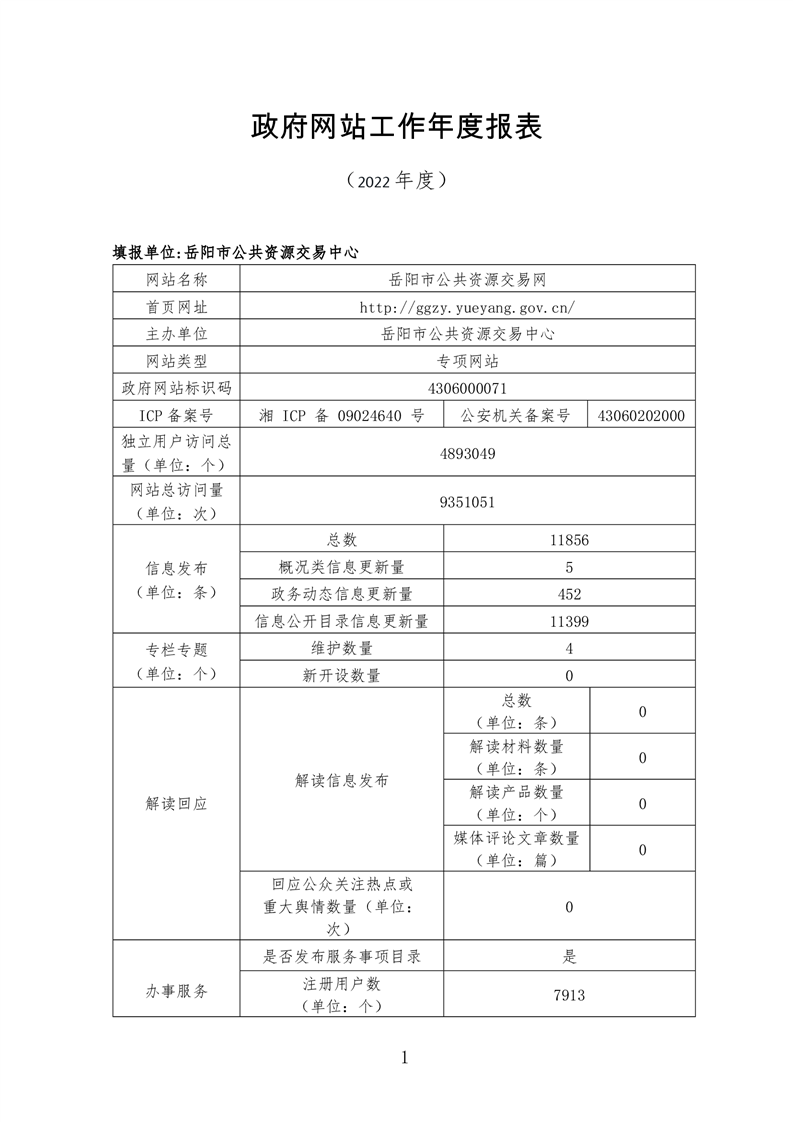 岳阳市公共资源交易中心2022年政府网站工作年度报表