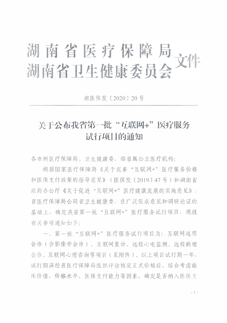转发《关于公布我省第一批“互联网+”医疗服务试行项目的通知》的通知