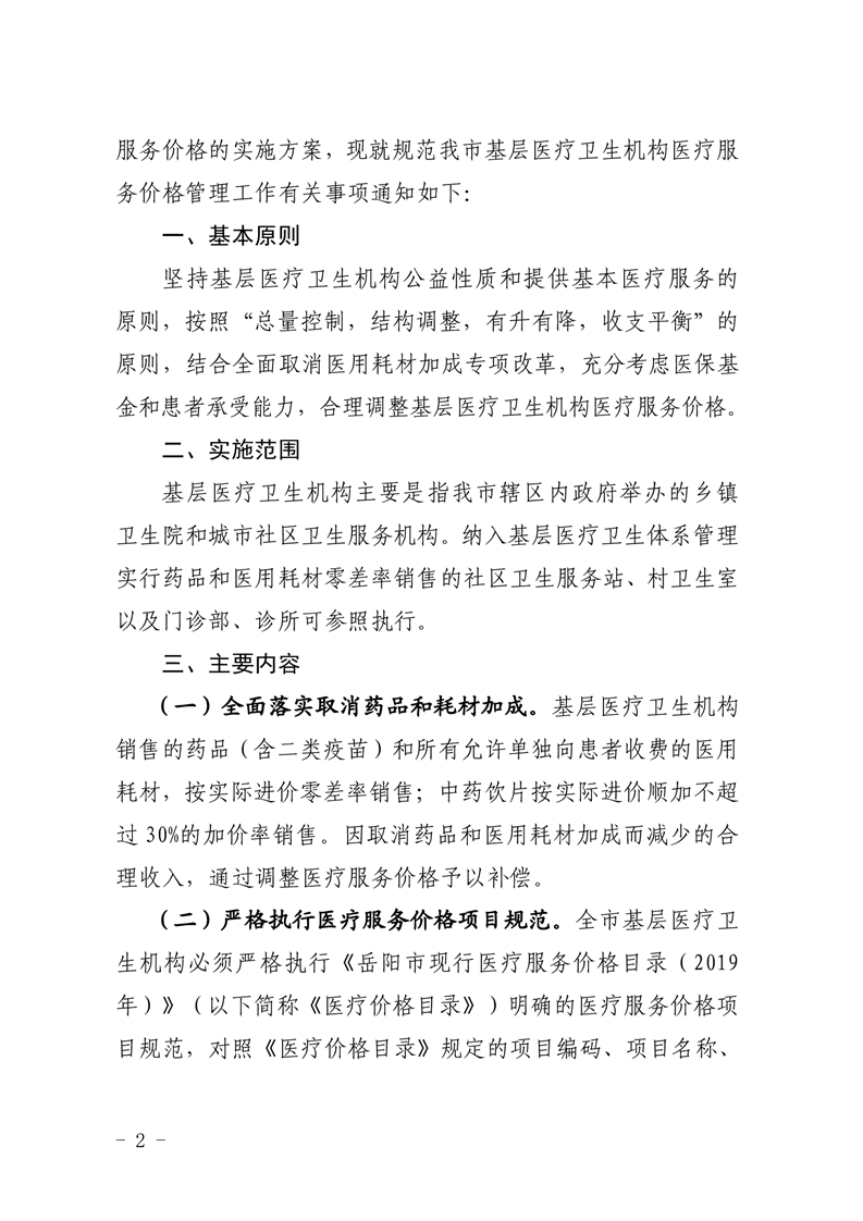 岳医保发50号:关于规范基层医疗卫生机构医疗服务价格管理工作的通知