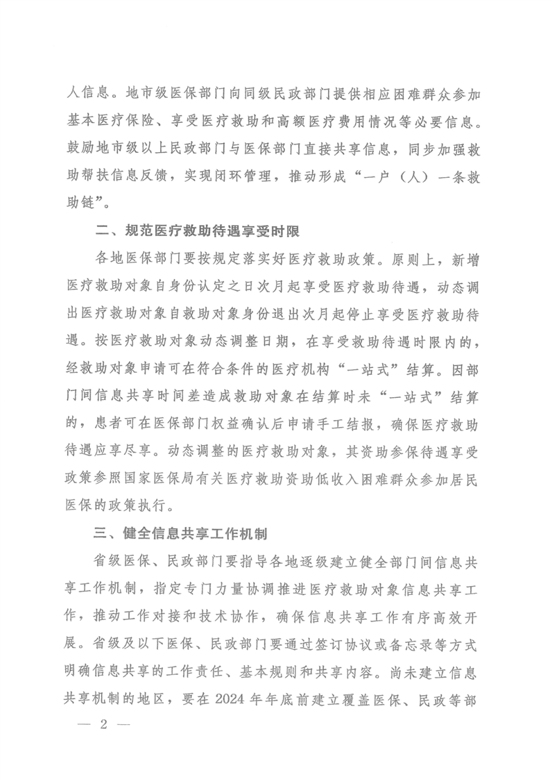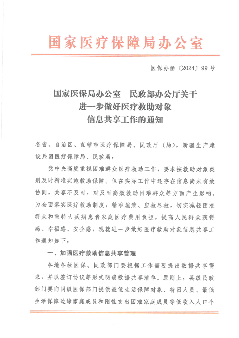 关于进一步做好医疗救助对象信息共享工作的通知(医保办函〔2024〕99号)