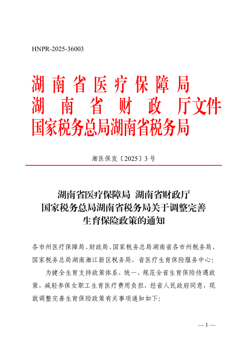 关于调整完善生育保险政策的通知(湘医保发〔2025〕3号)