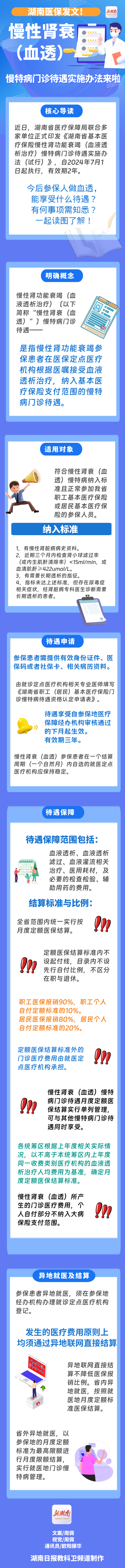 图解《湖南省基本医疗保险慢性肾功能衰竭(血液透析治疗)慢特病门诊待遇实施办法(试行)》