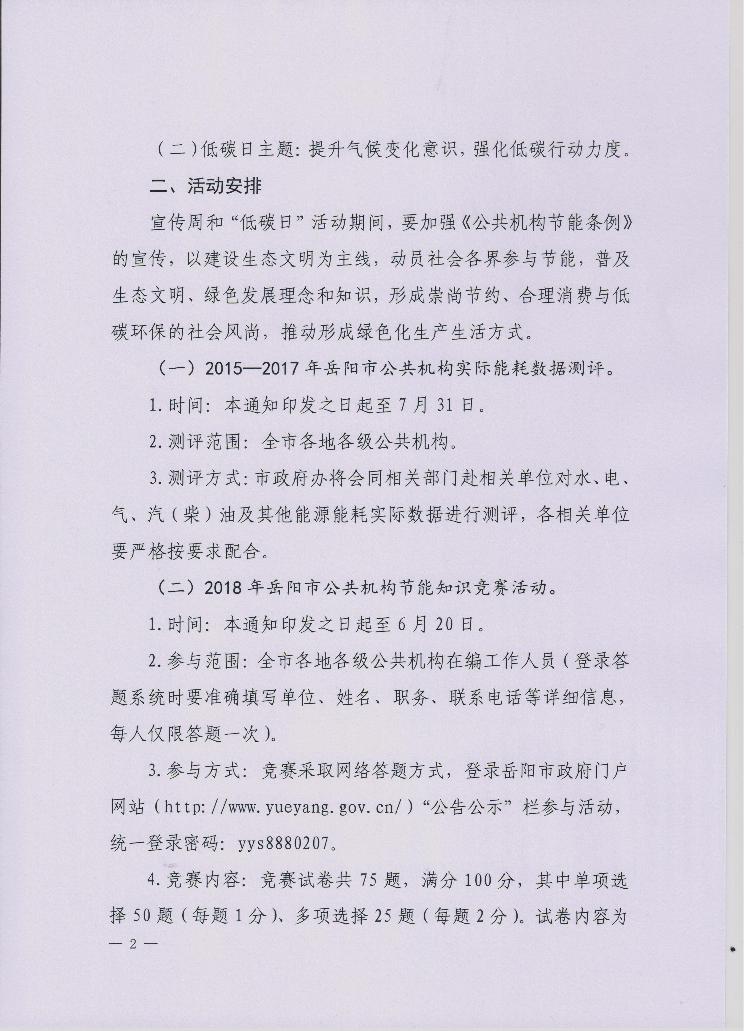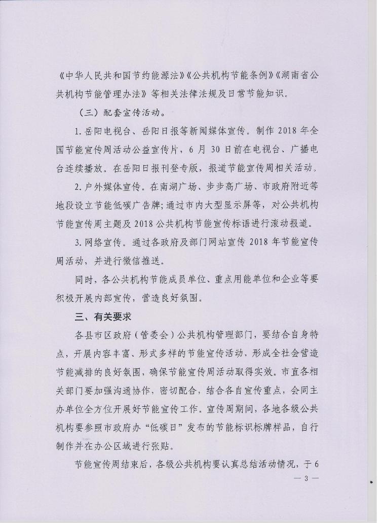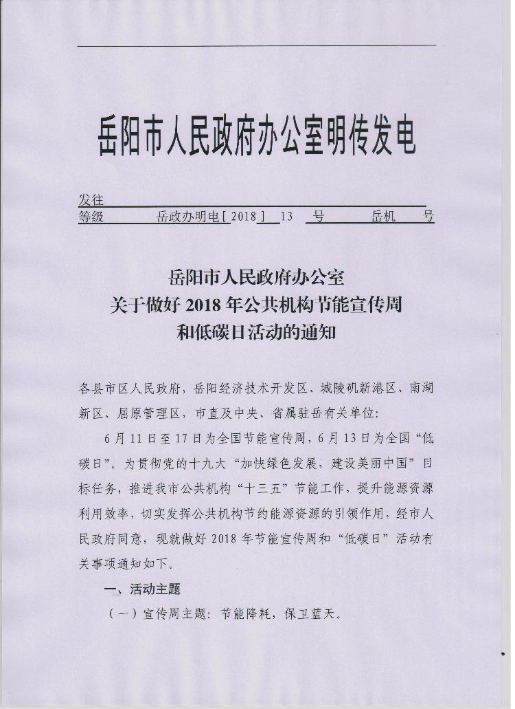 转发岳阳市人民政府办公室:关于做好2018年公共机构节能宣传周和低碳日活动的通知