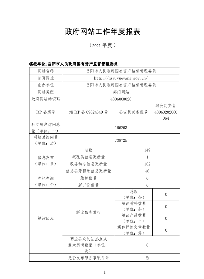 市国资委政府网站工作年度报表 ( 2021 年度)