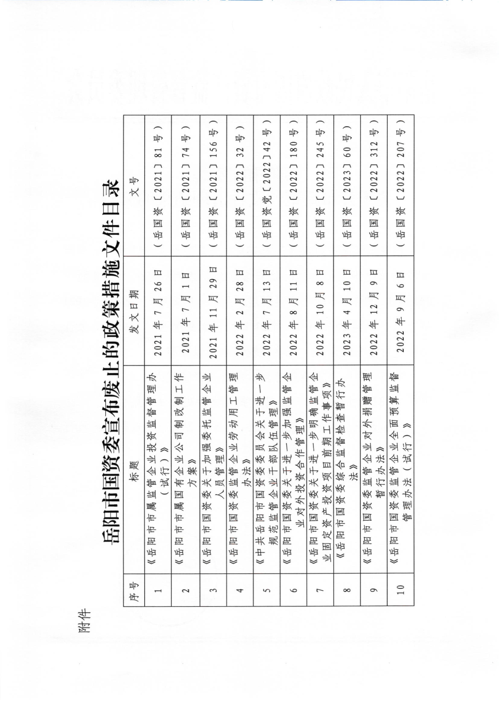 岳阳市国资委关于公布政策性文件清理结果的公告