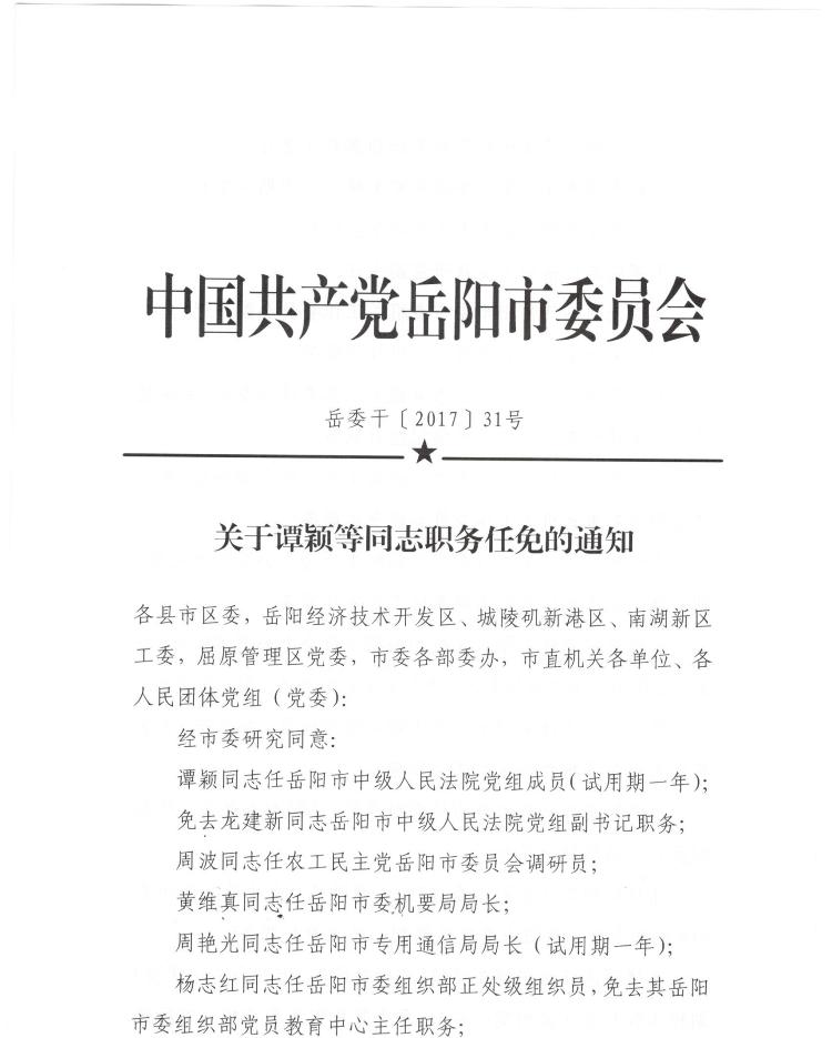 关于谭颖等同志职务任免的通知