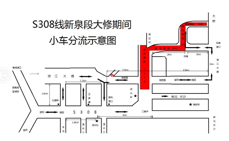 2、益阳方向过境湘阴的车辆绕行长益高速上望岳高速