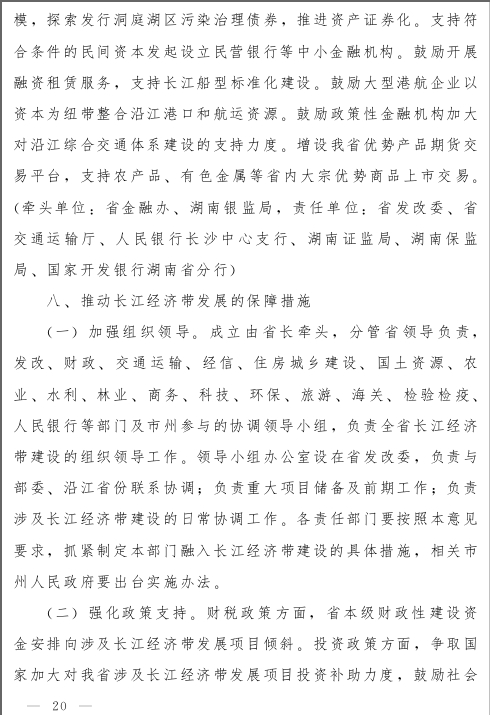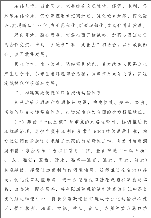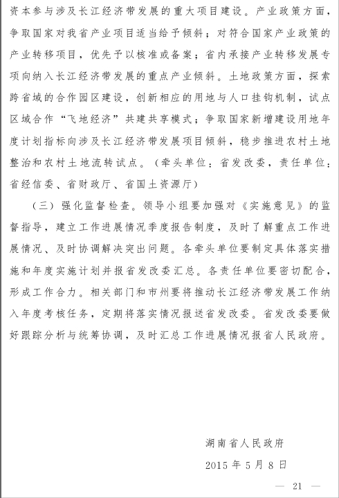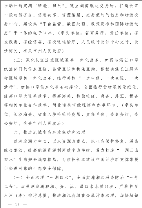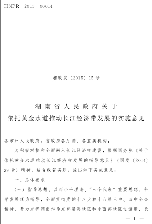 湖南省人民政府关于依托黄金水道推动长江经济带发展的实施意见