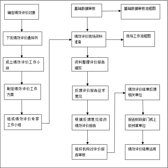 本次绩效评价工作,由中心风险防控科牵头,财务管理科科长、人事教育科科长、综合科科长、行政保卫科科长共同组成预算绩效自评工作组。首先开展培训和督导,收集相关资料,熟悉掌握相关信息。其次建立绩效评价框架,对各指标进行整理分类、筛选和优化,与主管单位沟通,对框架达成共识。三是设计问卷调查和访问对象,确定抽样项目和现场评价对象。四是制定具体实施方案,合理分解任务。五是分析数据,撰写绩效评价报告,整理汇总资料。具体详见下图(绩效评价工作流程图):