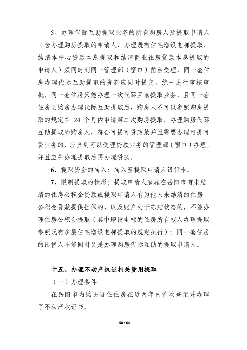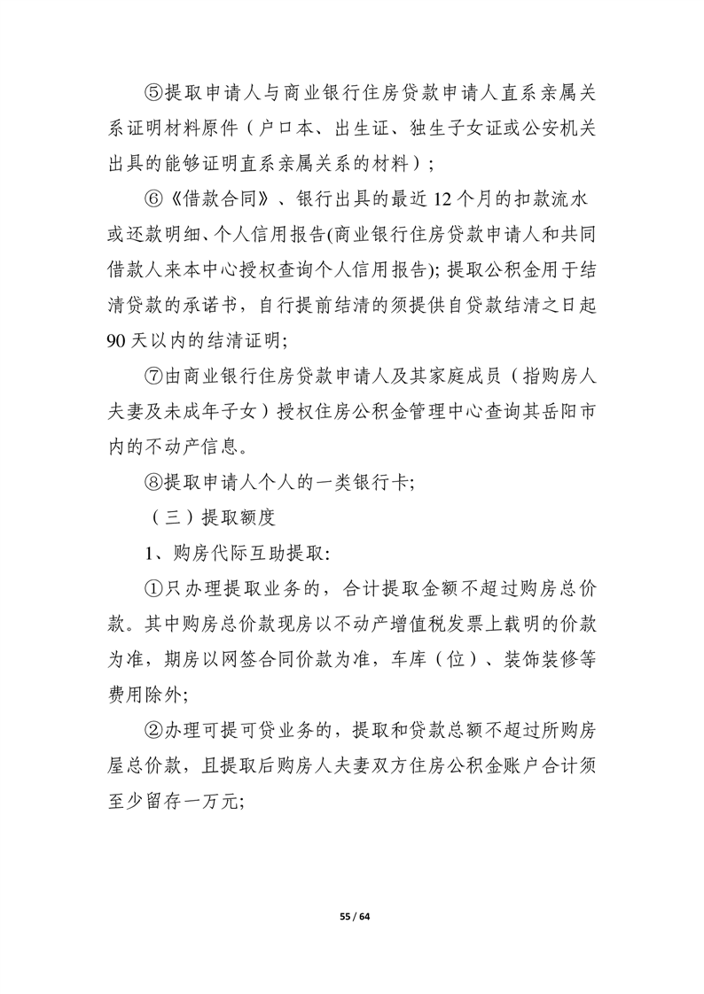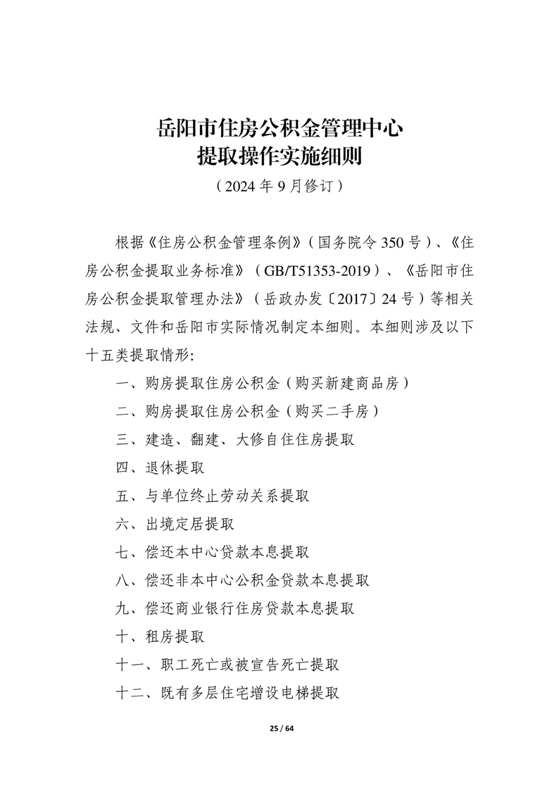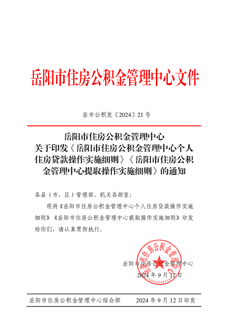 《岳阳市住房公积金管理中心个人住房贷款、提取操作实施细则》(2024年修订)
