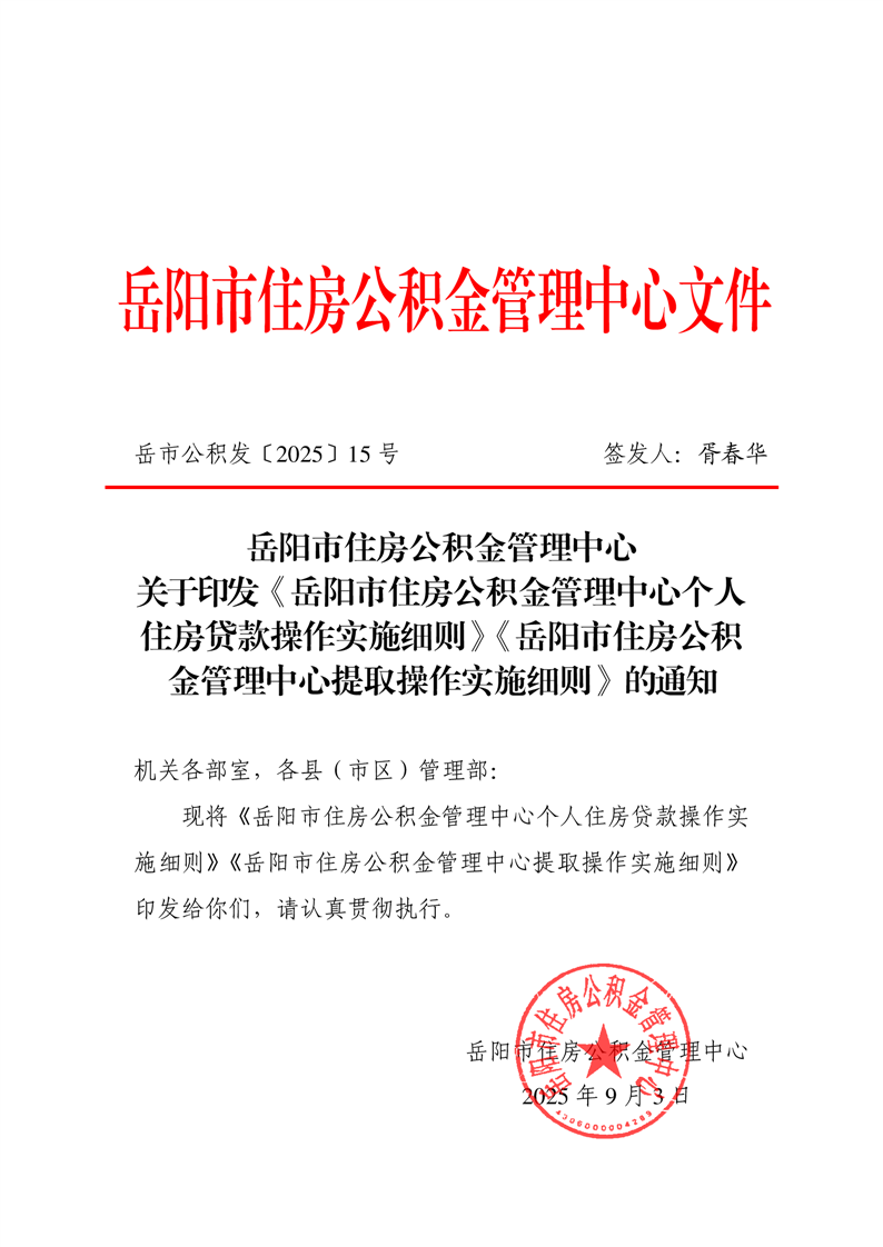 关于印发《岳阳市住房公积金管理中心个人住房贷款操作实施细则》《岳阳市住房公积金管理中心提取操作实施细则》的通知