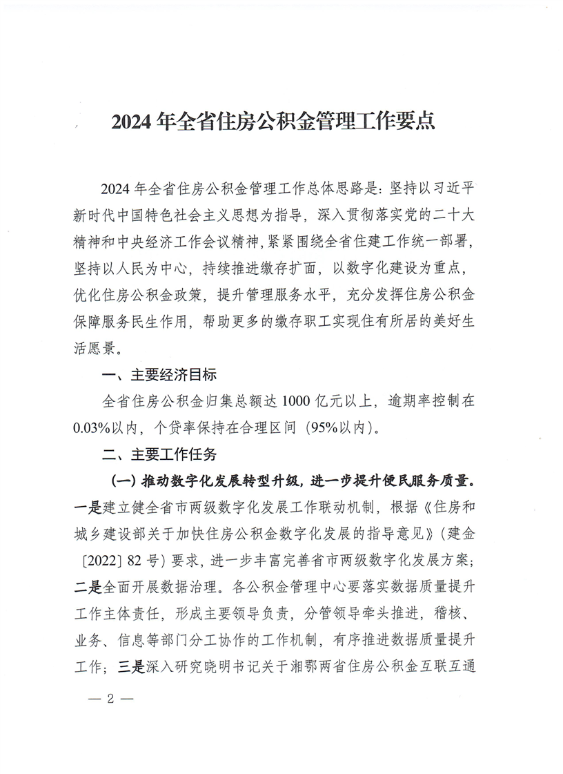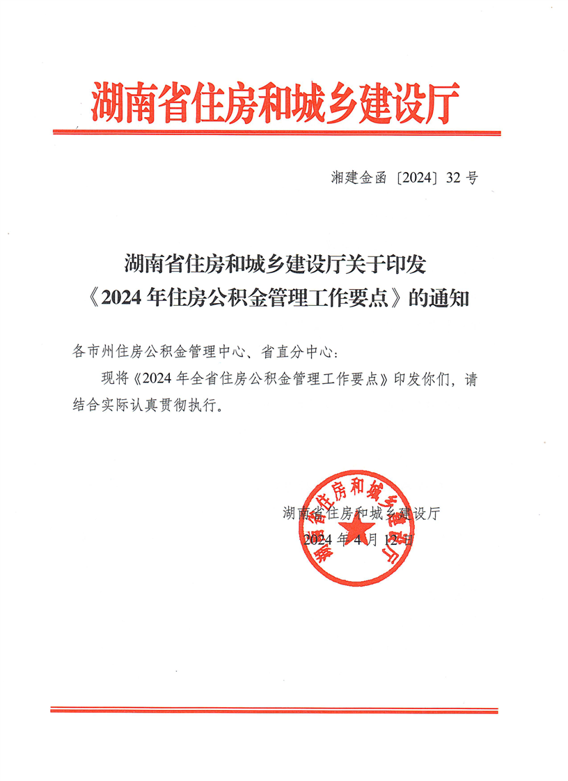 湖南省住房和城乡建设厅关于印发《2024年住房公积金管理工作要点》的通知
