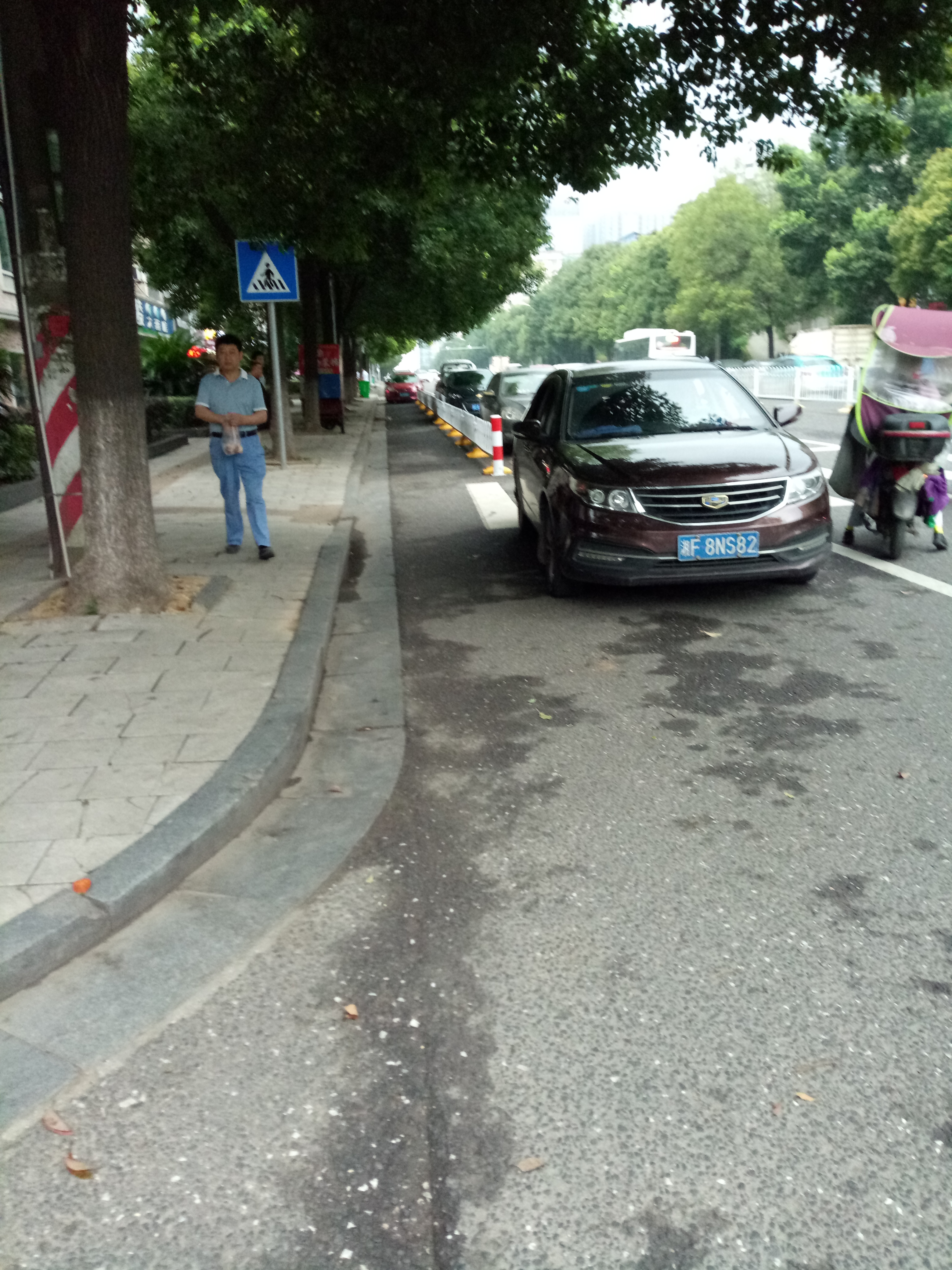 岳阳城区现在新装了很多非机动车道栏杆,本意是好的,但是有很多不自觉的车主加上有关部门疏于管理,导致现状是:非机动车道不通,机动车道更堵。