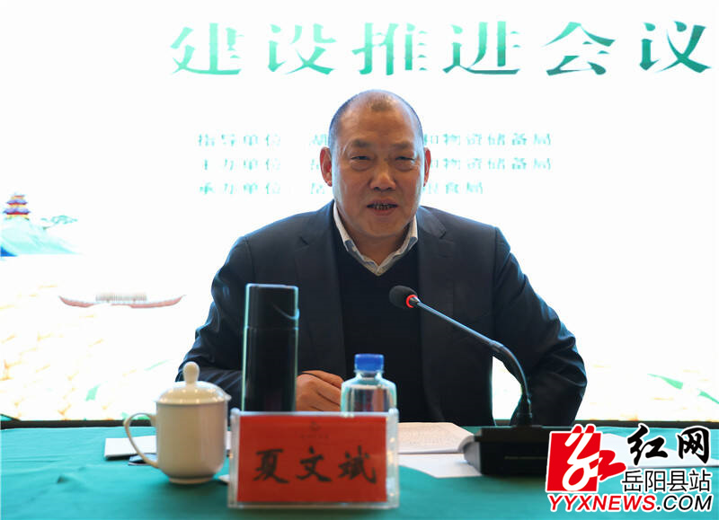 岳阳县融媒体中心3月14日讯(记者 张帆 尹宇豪)3月12日,岳阳市“国家储备粮源基地”建设工作推进会议在岳阳县召开。省发展改革委党组成员,省粮食和物资储备局党组书记、局长夏文斌,副市长郭占扬,县委副书记、县长吴光文出席会议并讲话,县领导刘炀、敖珊参加。