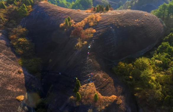 湖南平江石牛寨国家地质公园,位于湘鄂赣三省交汇处的平江县,面积51.53平方公里,系目前国内规模最大的丹霞地貌群落之一。公园景观以“十里绝壁、百里丹霞”为典型代表,地质遗迹多达170余处,