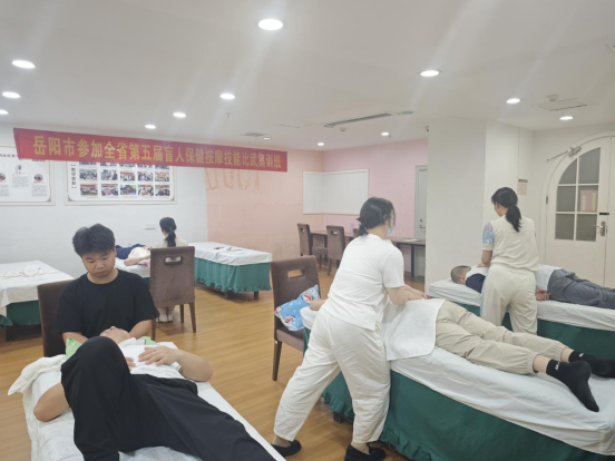 为积极备战湖南省第五届盲人保健按摩技能比武活动,全面提升岳阳市参赛选手的专业技能水平。近日,岳阳市残联组织来自全市的13名优秀盲人按摩师参与集训选拔活动。经过严格筛选与高强度训练,吴劲松等9名优秀选手脱颖而出,他们将代表岳阳市参加湖南省第五届盲人保健按摩技能比武活动。