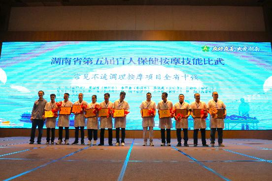 经过激烈比拼,31名选手脱颖而出,分获各个项目的全省十强。岳阳市、株洲市、湘潭市、郴州市、长沙市代表队获得第五届盲人保健按摩技能比武团体总分前三名,张家界市、常德市、衡阳市、益阳市代表队获得团体优胜单位。